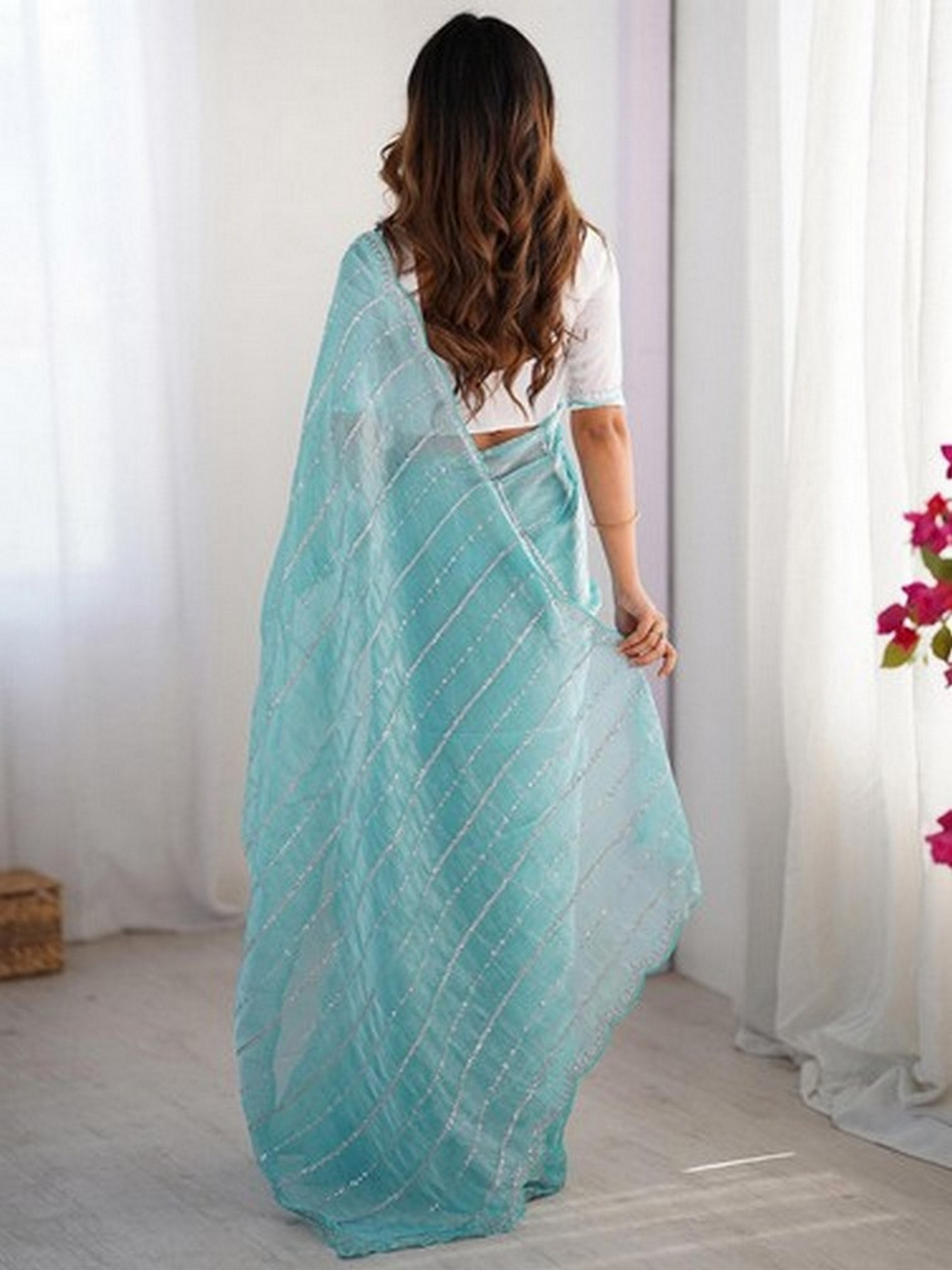 Sky Blue Color Zimmy Choo Fabric Designer Embroidered Saree For Ceremonial Looks
