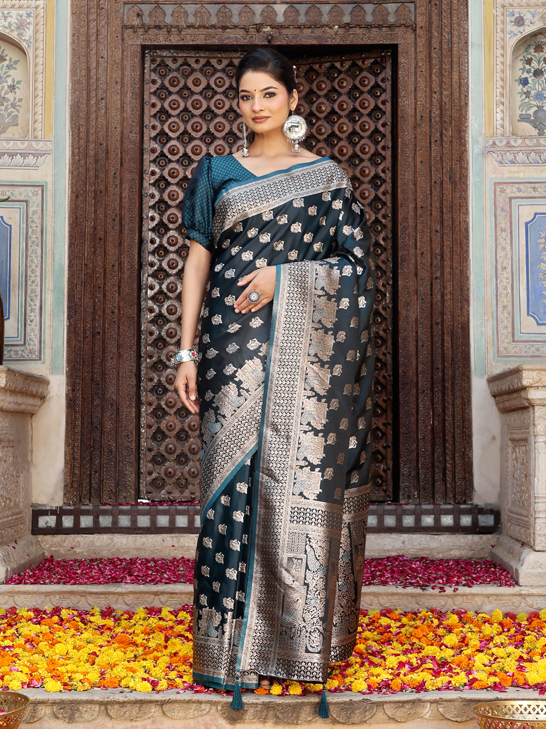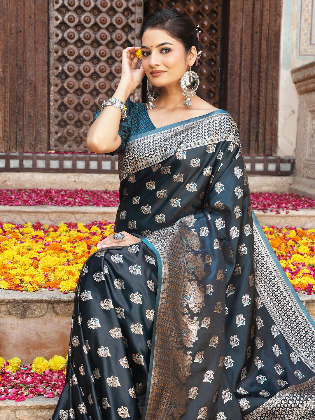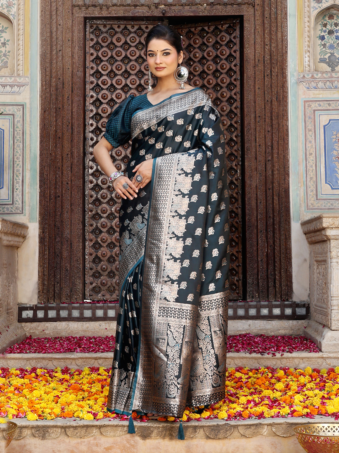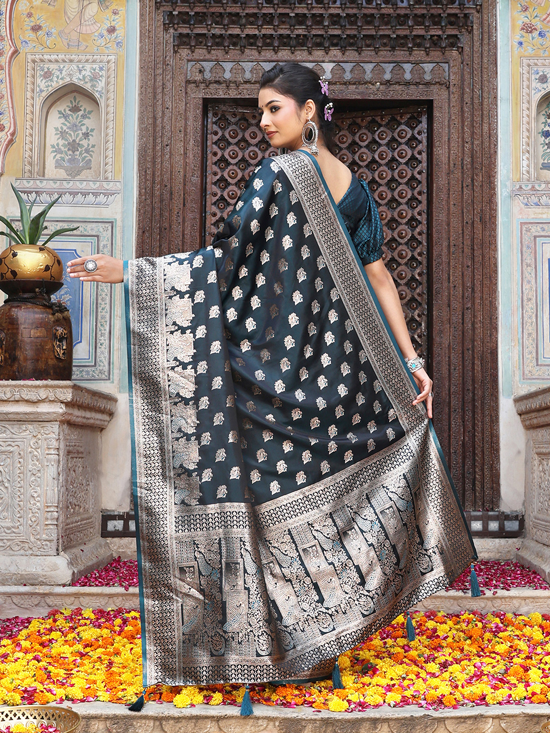 Tarquice Color Woven Designer Ethnic Silk Fabric Graceful Partywear Saree