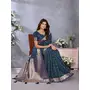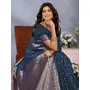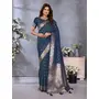 Teal Blue Color Banarasi Silk Jacquard Weving Designer Trendy Partywear Saree