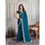 Teal Blue Color Burberry Silk Fabric Graceful Partywear Saree