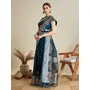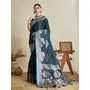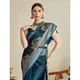 Teal Blue Color Satin Silk Fabric Woven Designer Partywear Saree