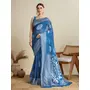 Teal Blue Color Soft Silk Fabric Wevon Flower Designer Stylish Partywear Saree