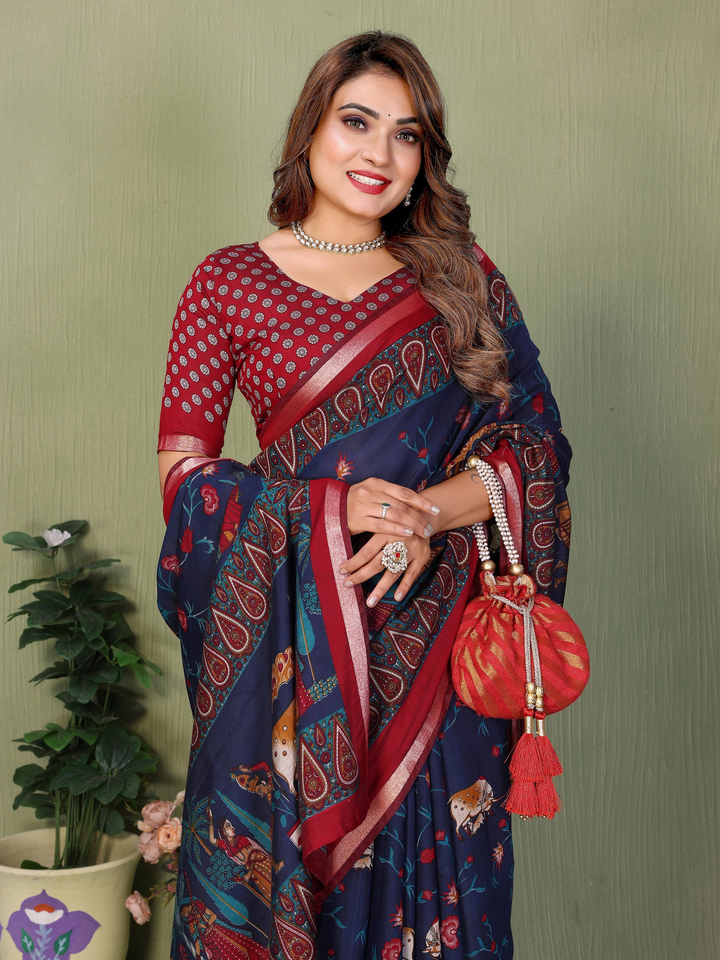 Looking These Party Wear Saree in Fine Colored.These Saree And Blouse is Fabricated On Mul Cotton.Its Beautified With Designer Kalamkari Printed.