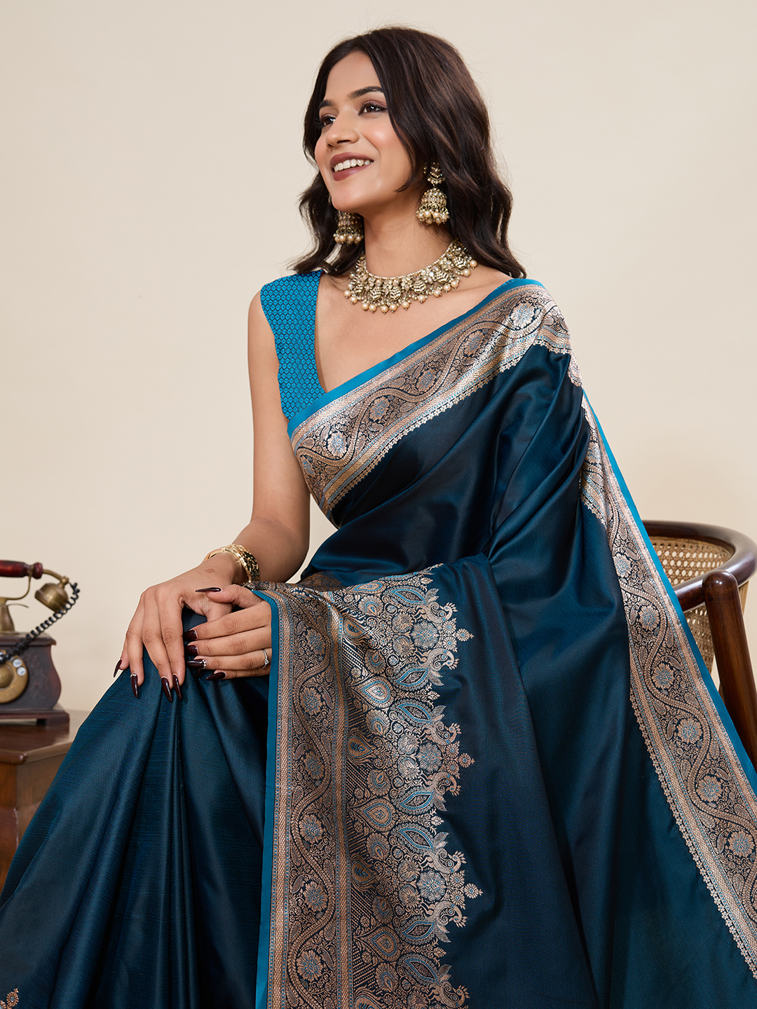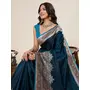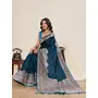 Teal Color Satin Silk fabric Wevon Jari Designer Ethnic Partywear Saree