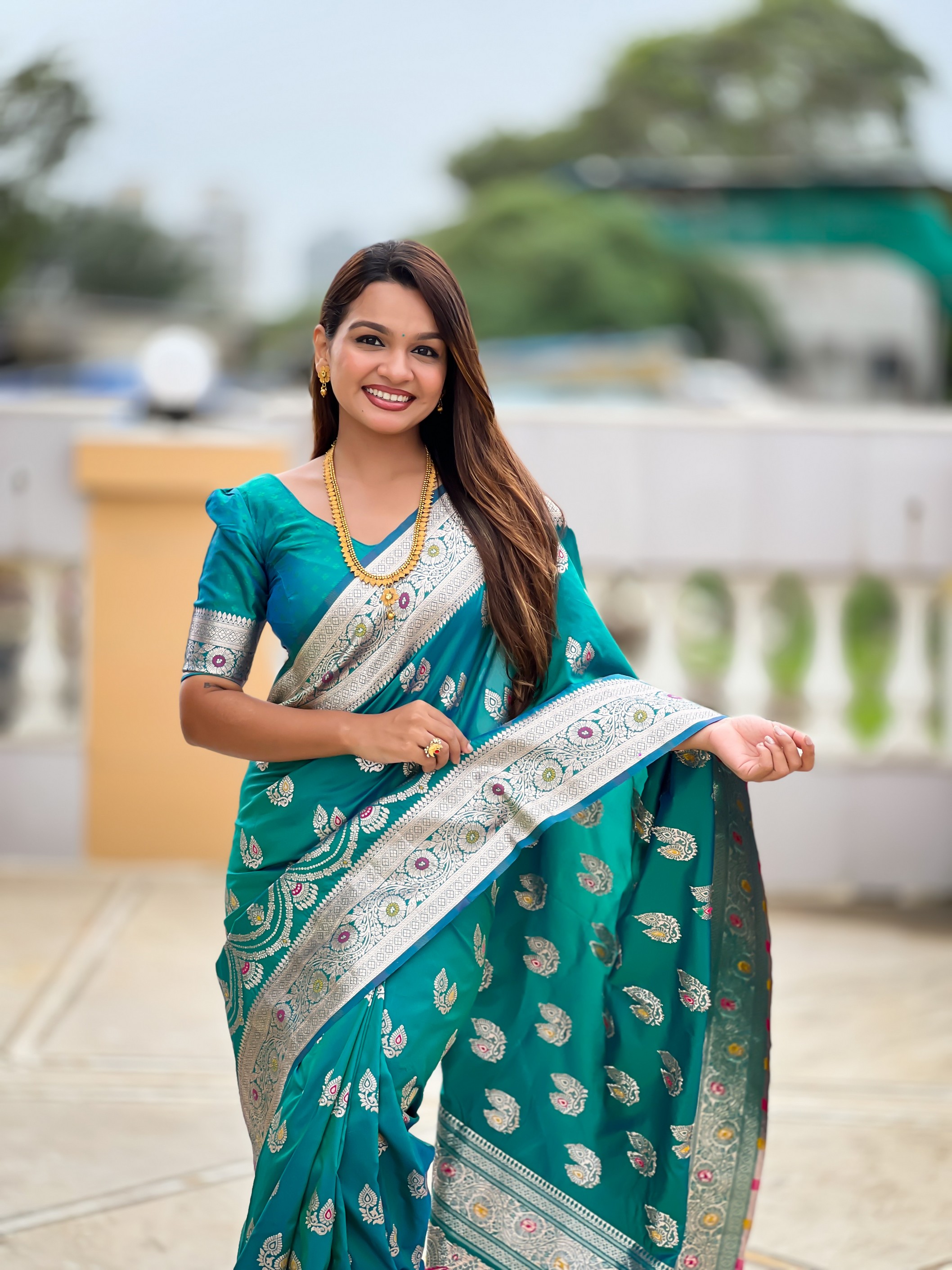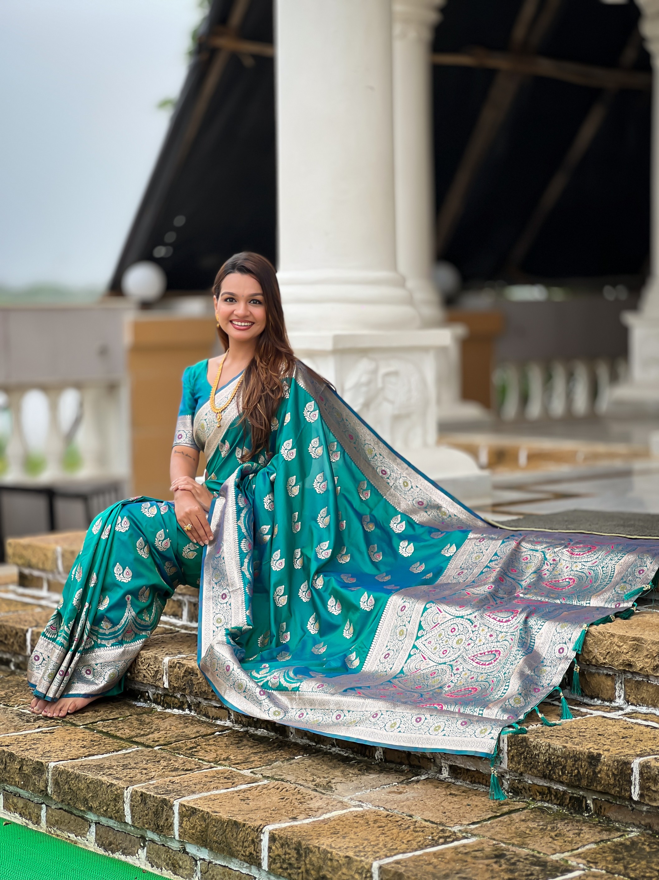 Teal Green Color Banarasi Silk Saree With Woven Jacquard Designer Ethnic Style