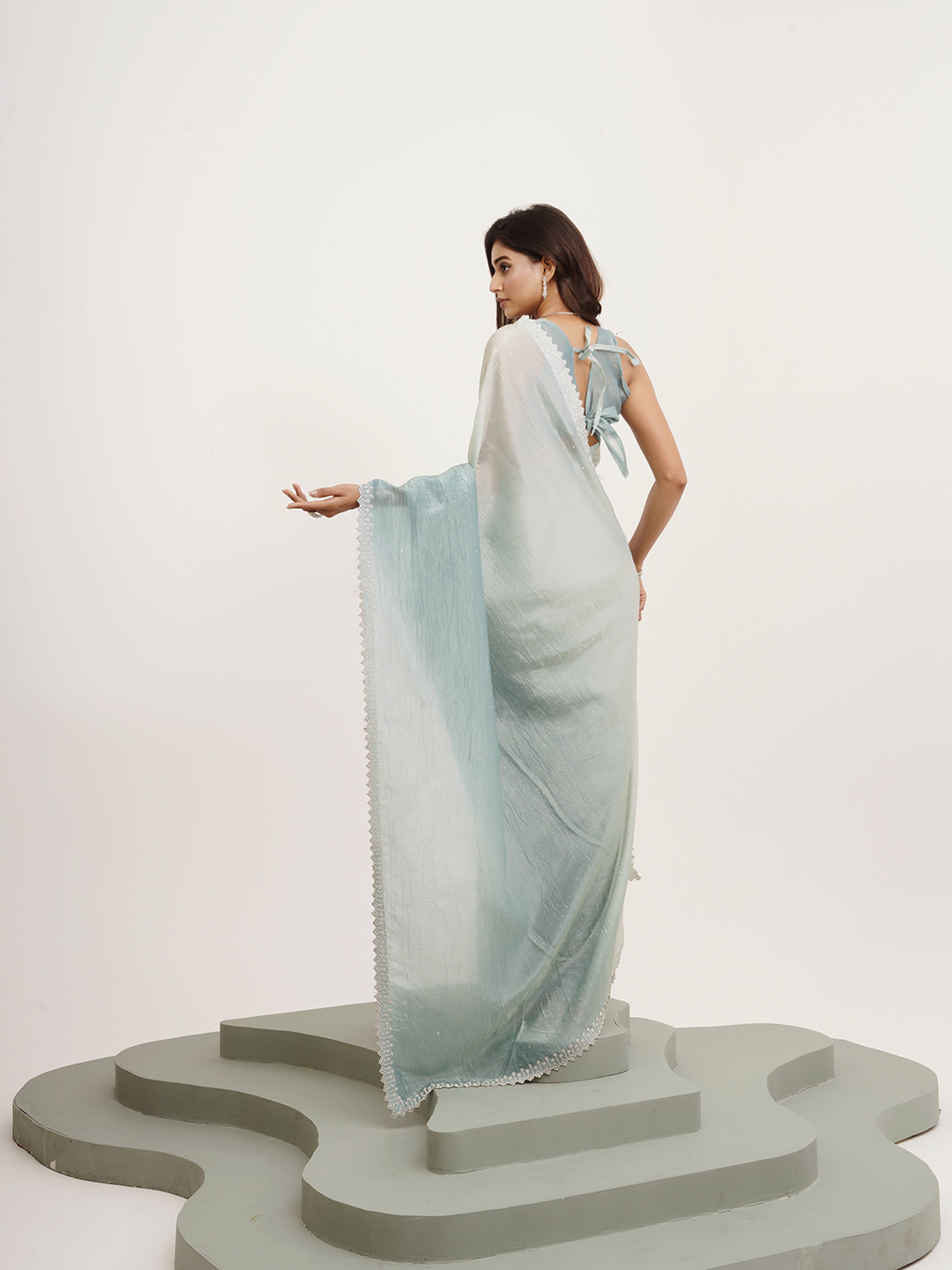 Turquoise Blue Color Tissue Fabric Embellished Beads and Stones Work Fancy Saree