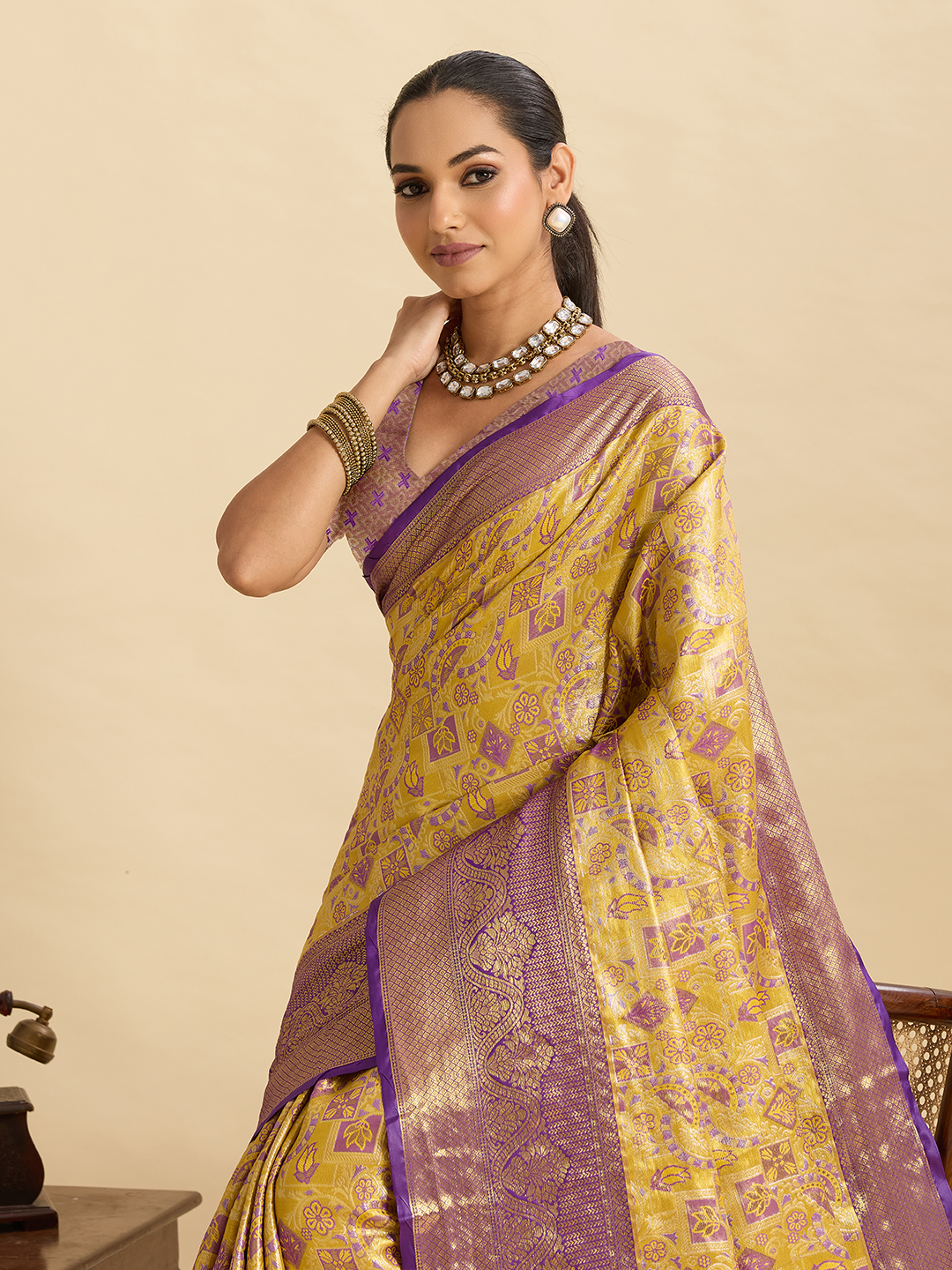 Violet Color Graceful Wevon Jari Designer Silk Blended Partywear Saree