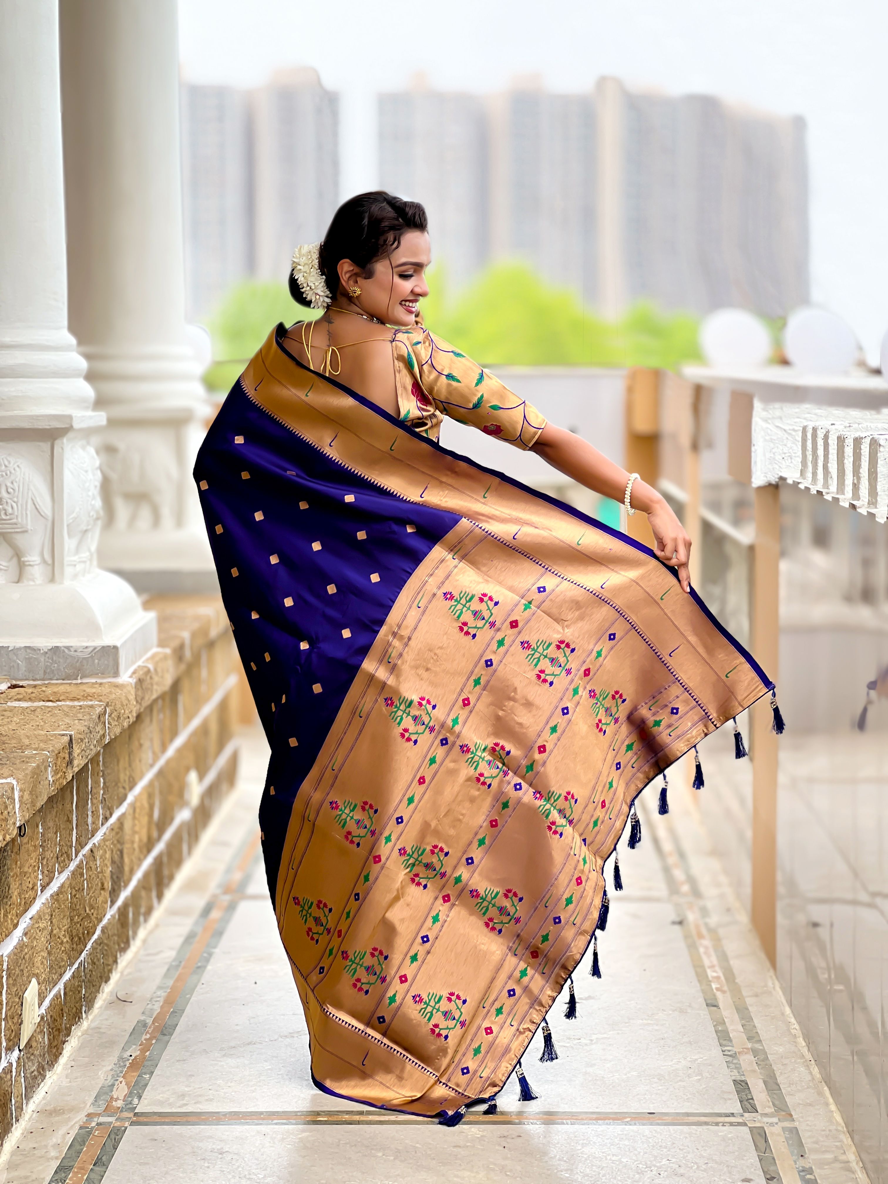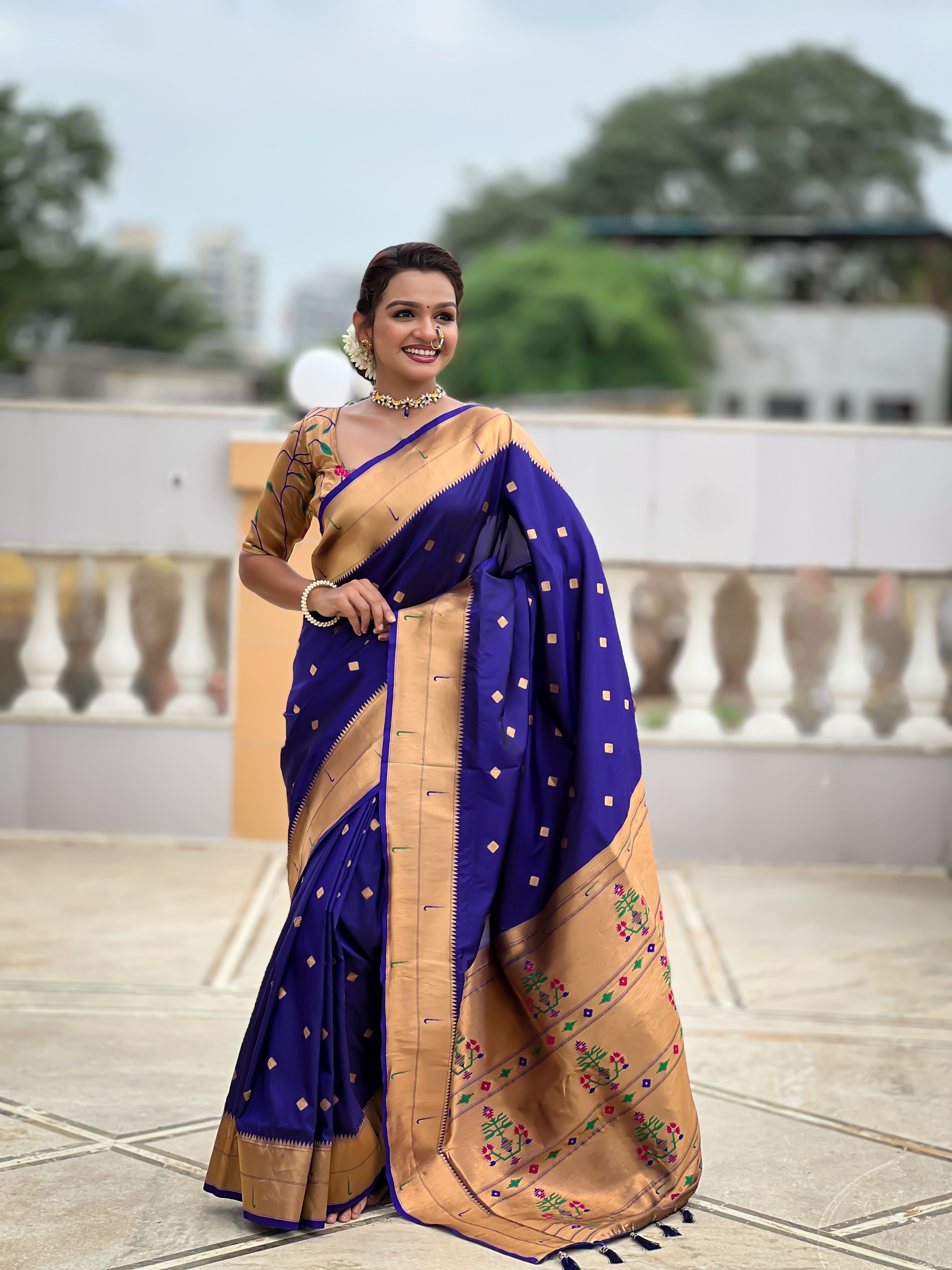Violet Color Paithani Silk Woven Jacquard Jari Designer Ethnic Saree