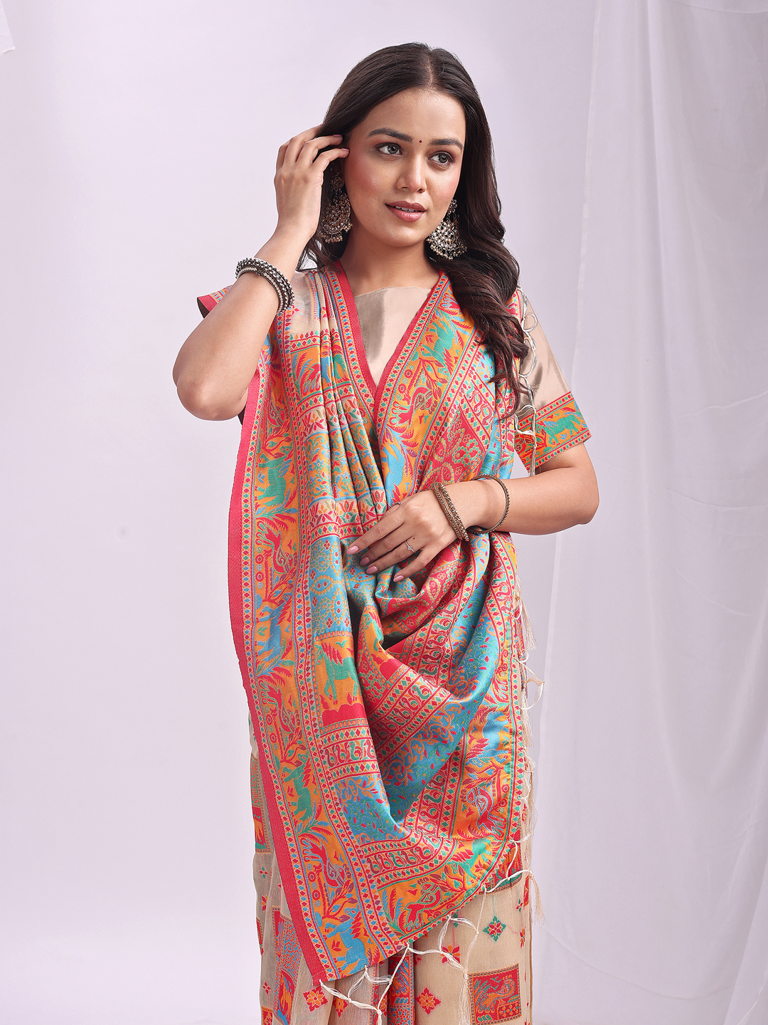 Wevon Thread Designer Off White Color Linen Cotton Fabric Traditional Rich Looks Saree