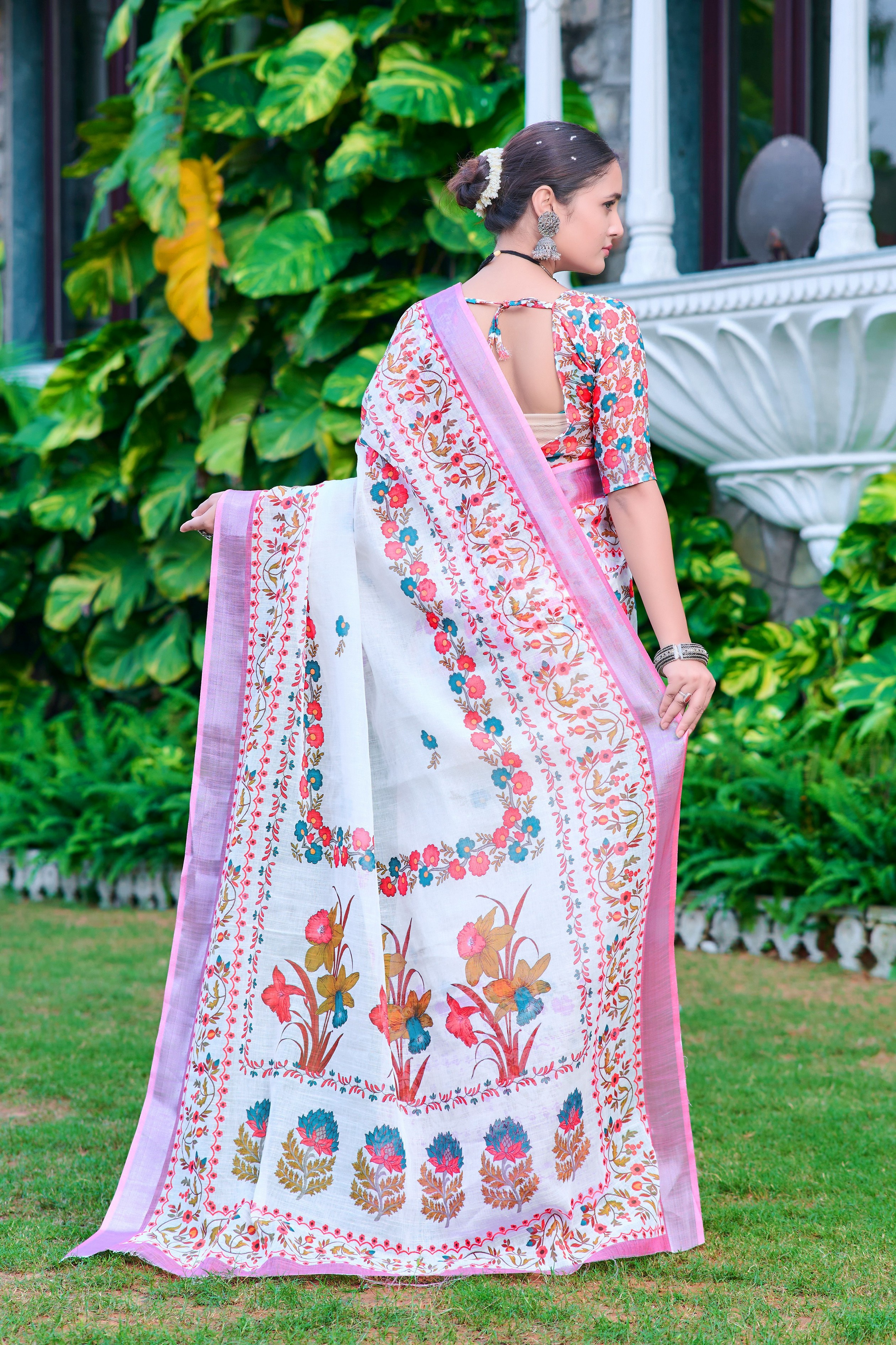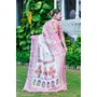 White Color Linen Cotton Fabric Designer Printed Ethnic Festive Saree