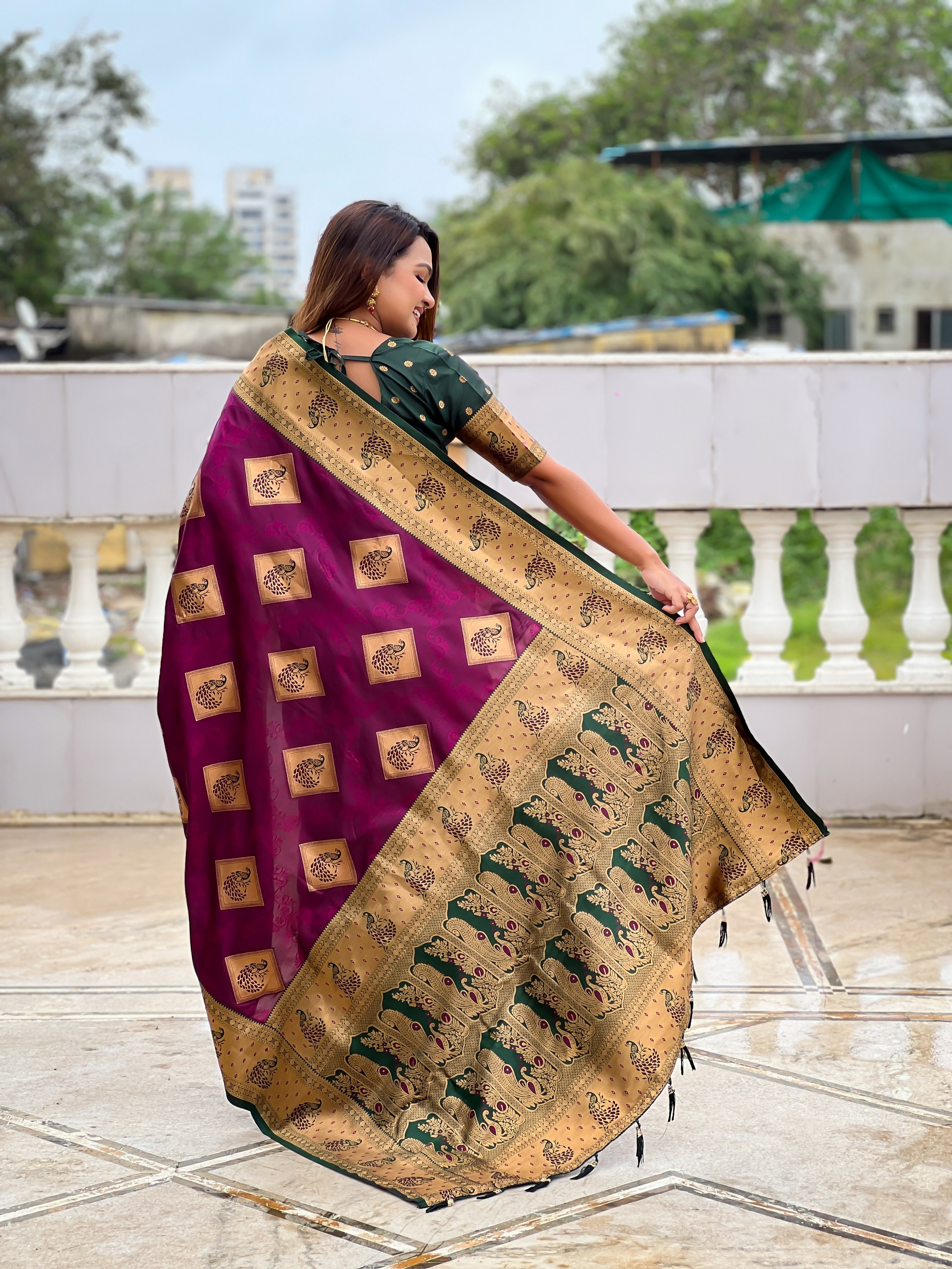 Wine Color Beautiful Woven Designer Meenakari Banarasi Silk Saree