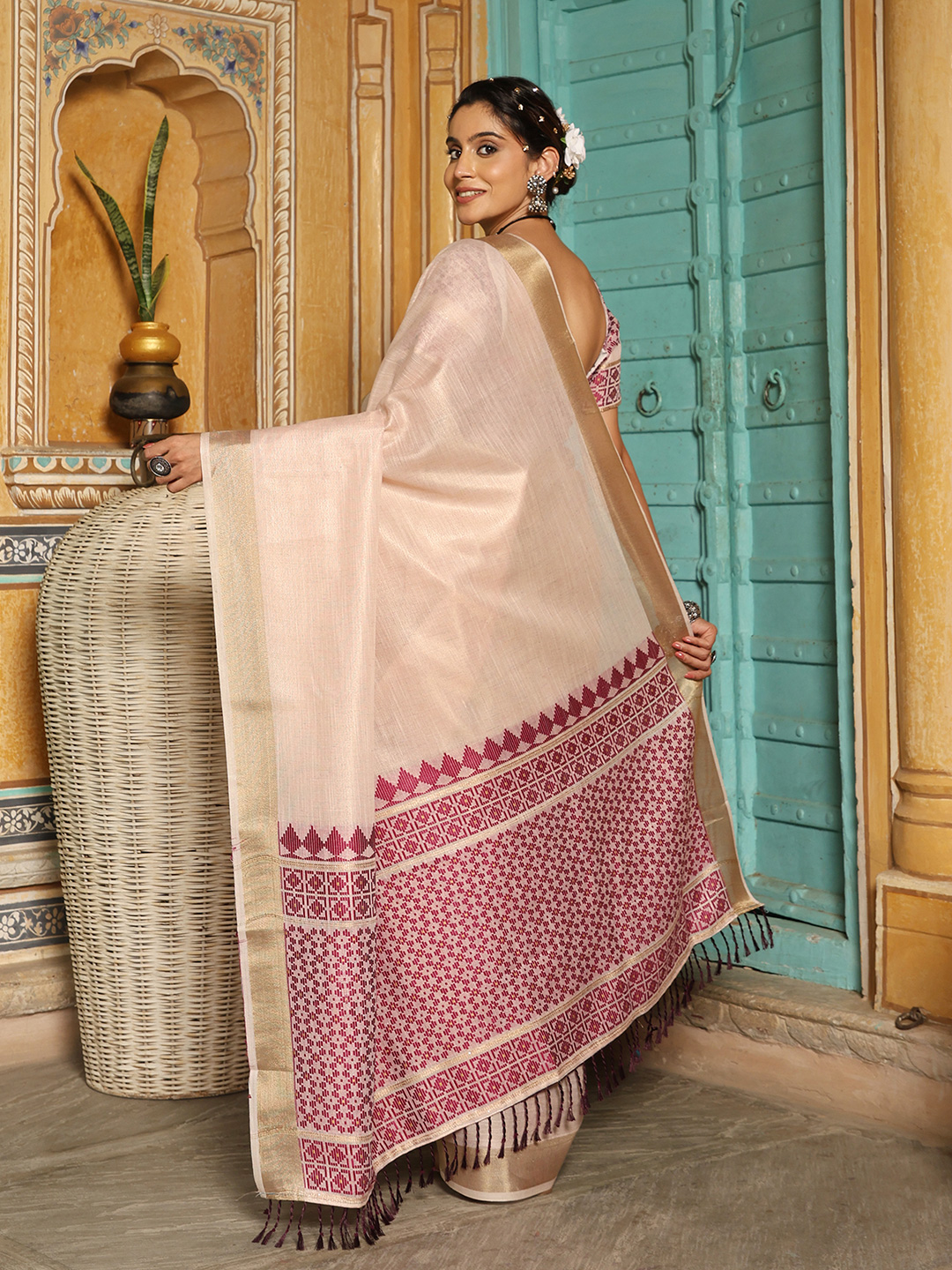 Wine Color Linen Fabric Woven Designer Beautiful Fancy Saree