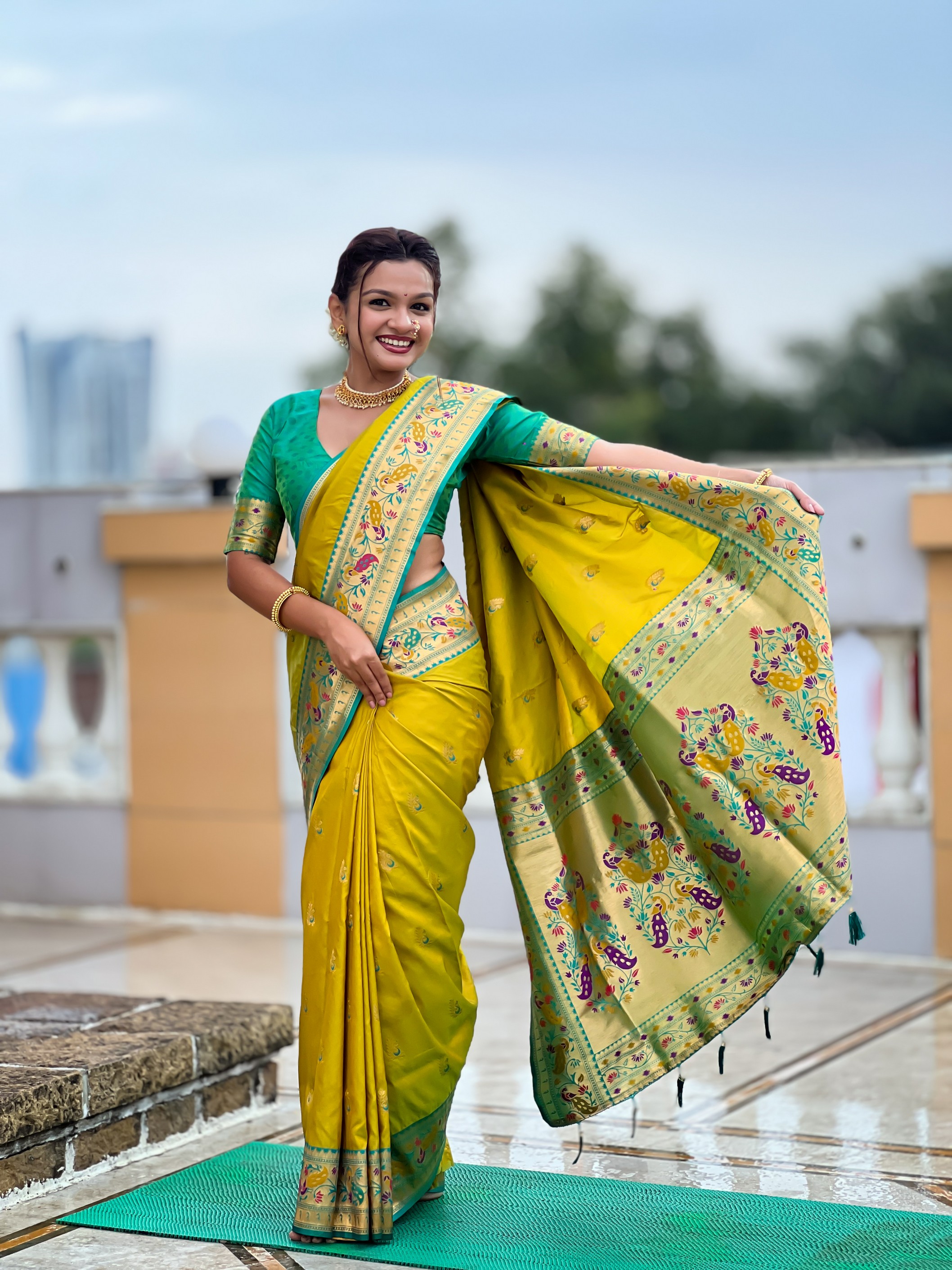 Attractive These Party Wear Saree in Fine Colored.These Saree Are Paithani Silk And Blouse is Fabricated On Paithani Silk.Its Beautified With Weaving Jacquard Meenakari Designer.