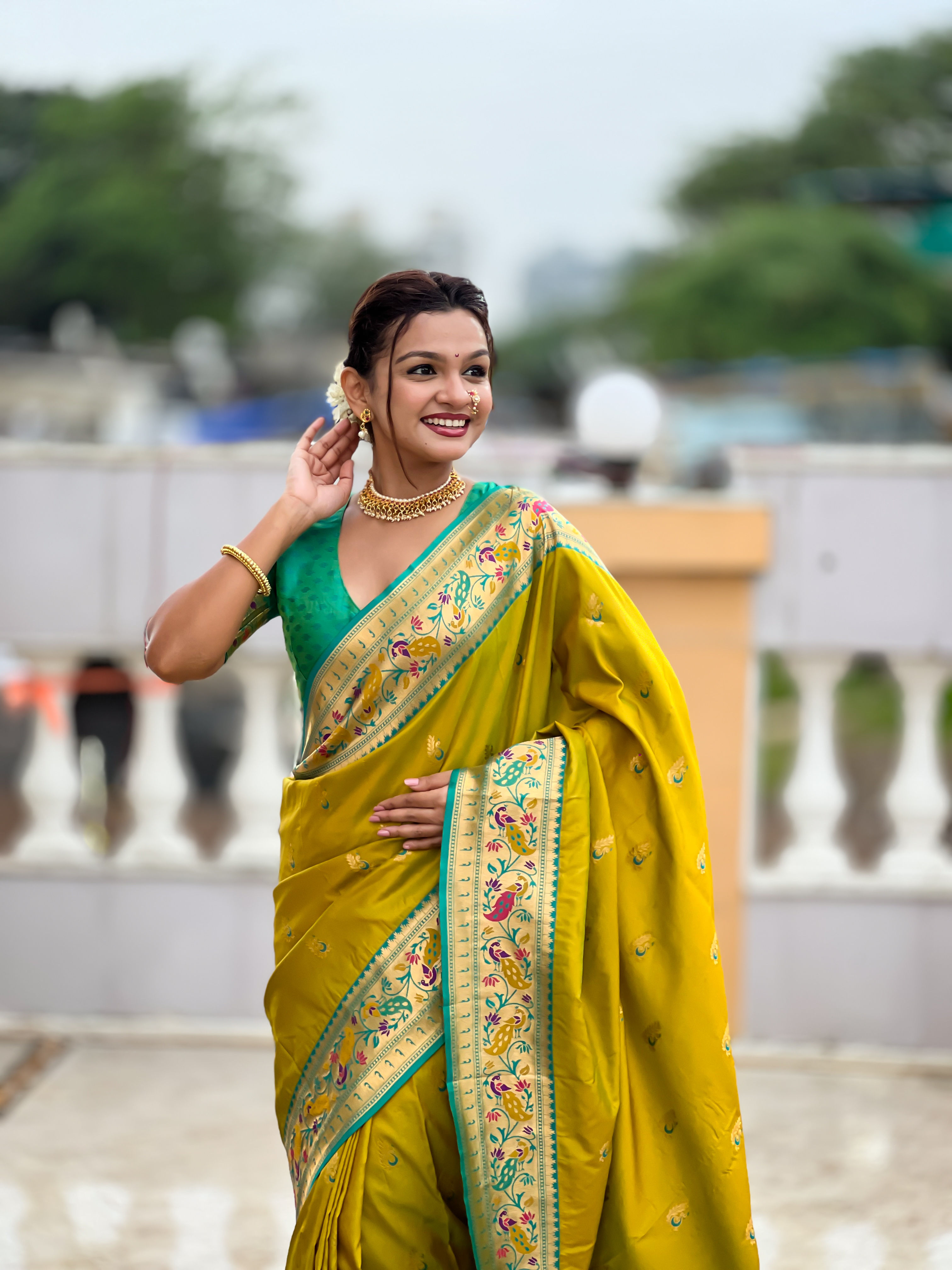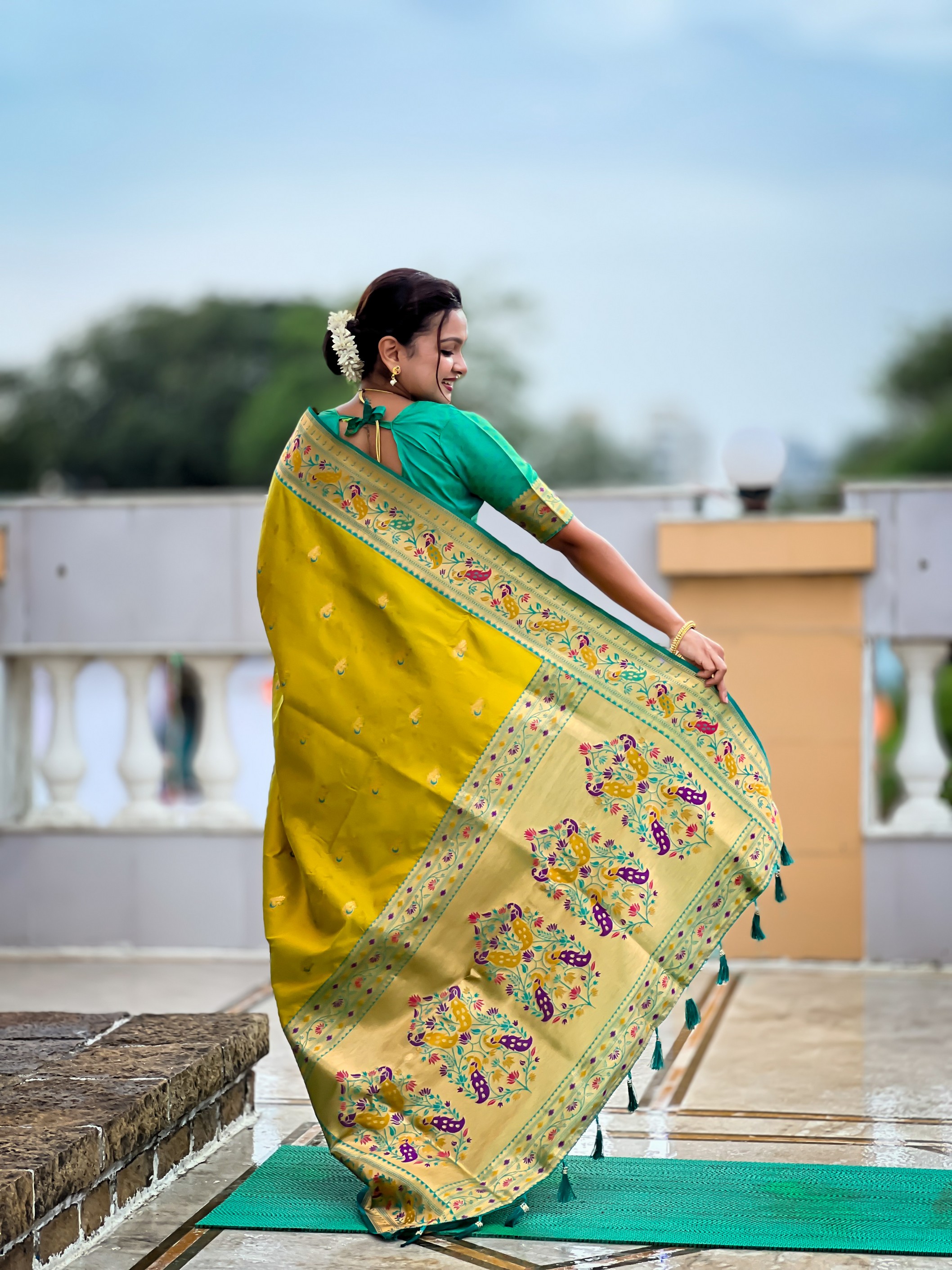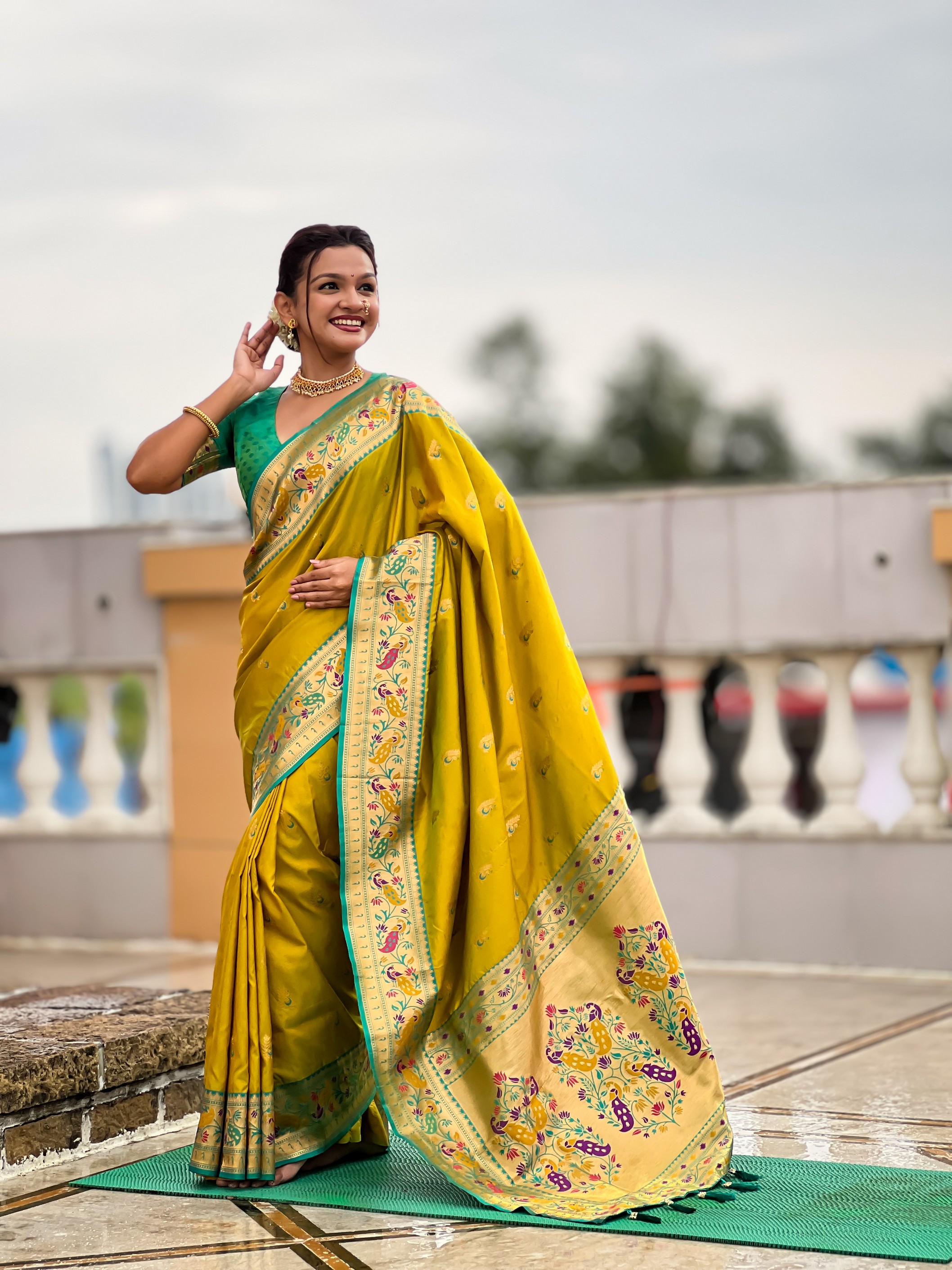 Woven Meenakari Jacquard Designer Parrot Green Color Paithani Silk Saree