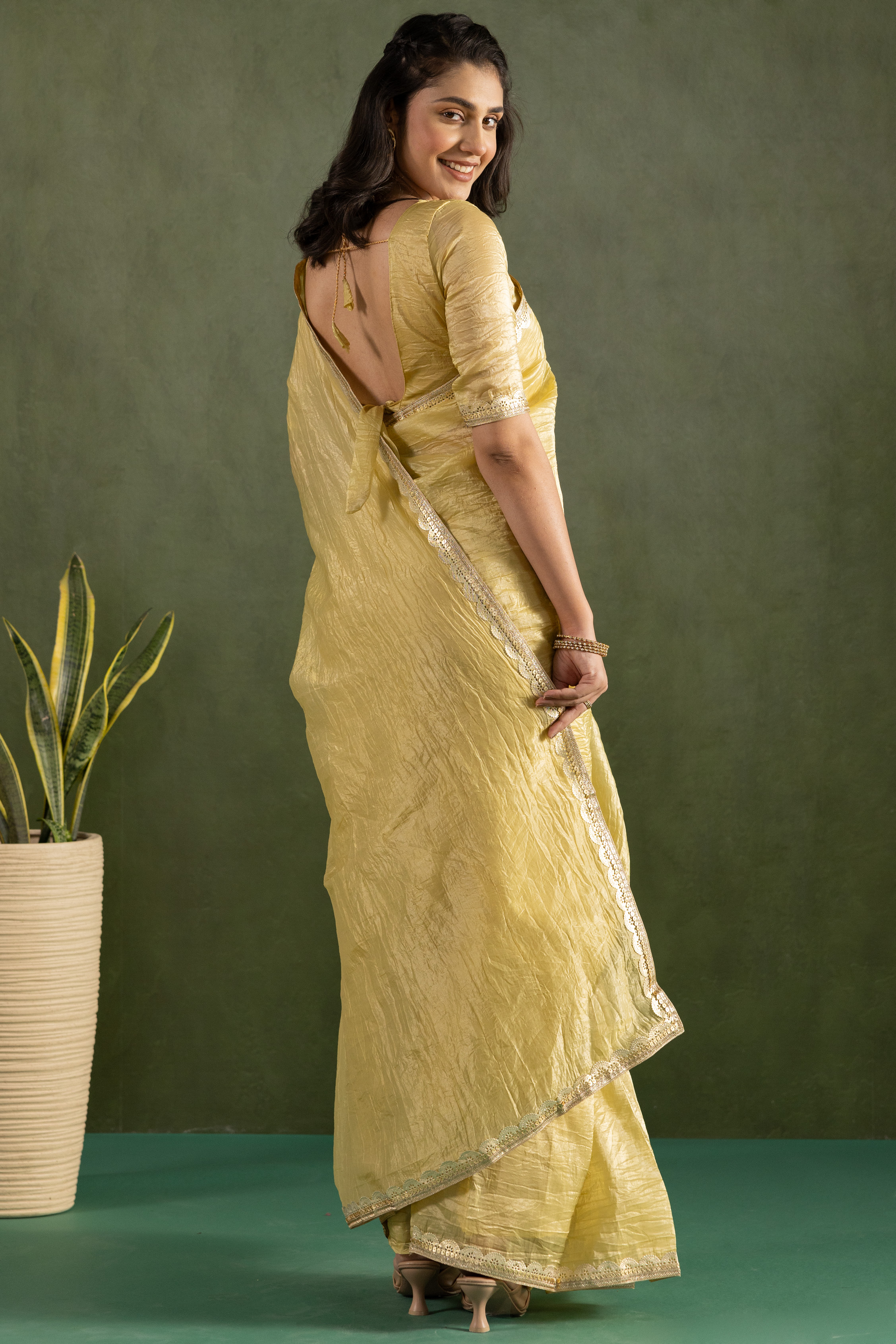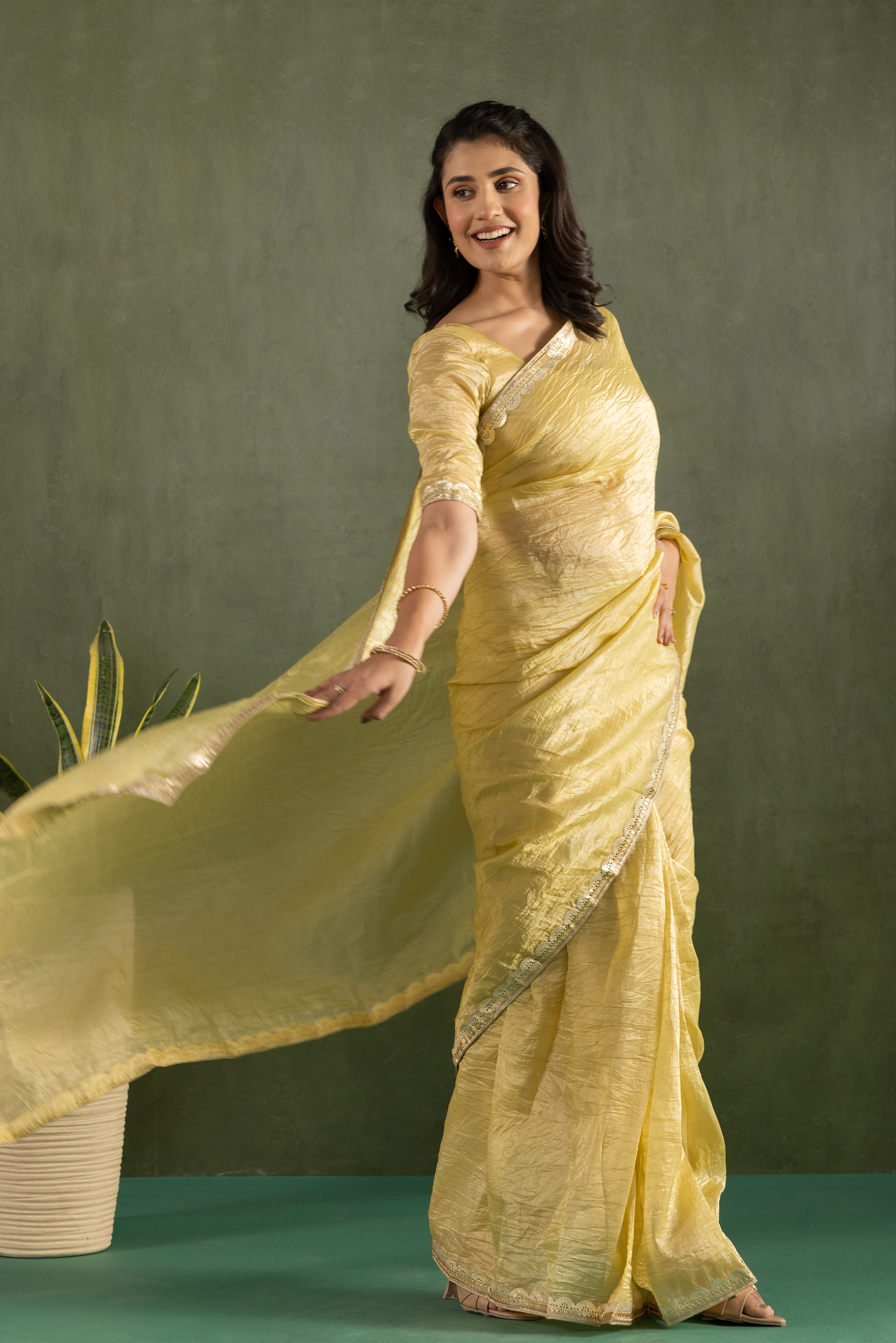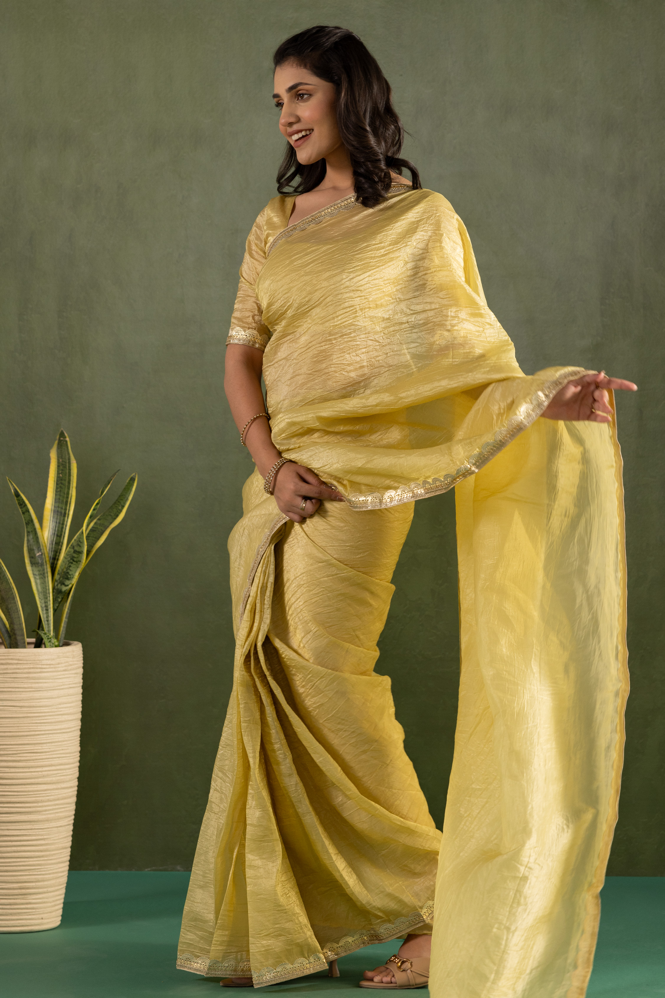 Yellow Color Chiffon Fabric Ready To Wear Saree For Graceful Bollywood Style Saree