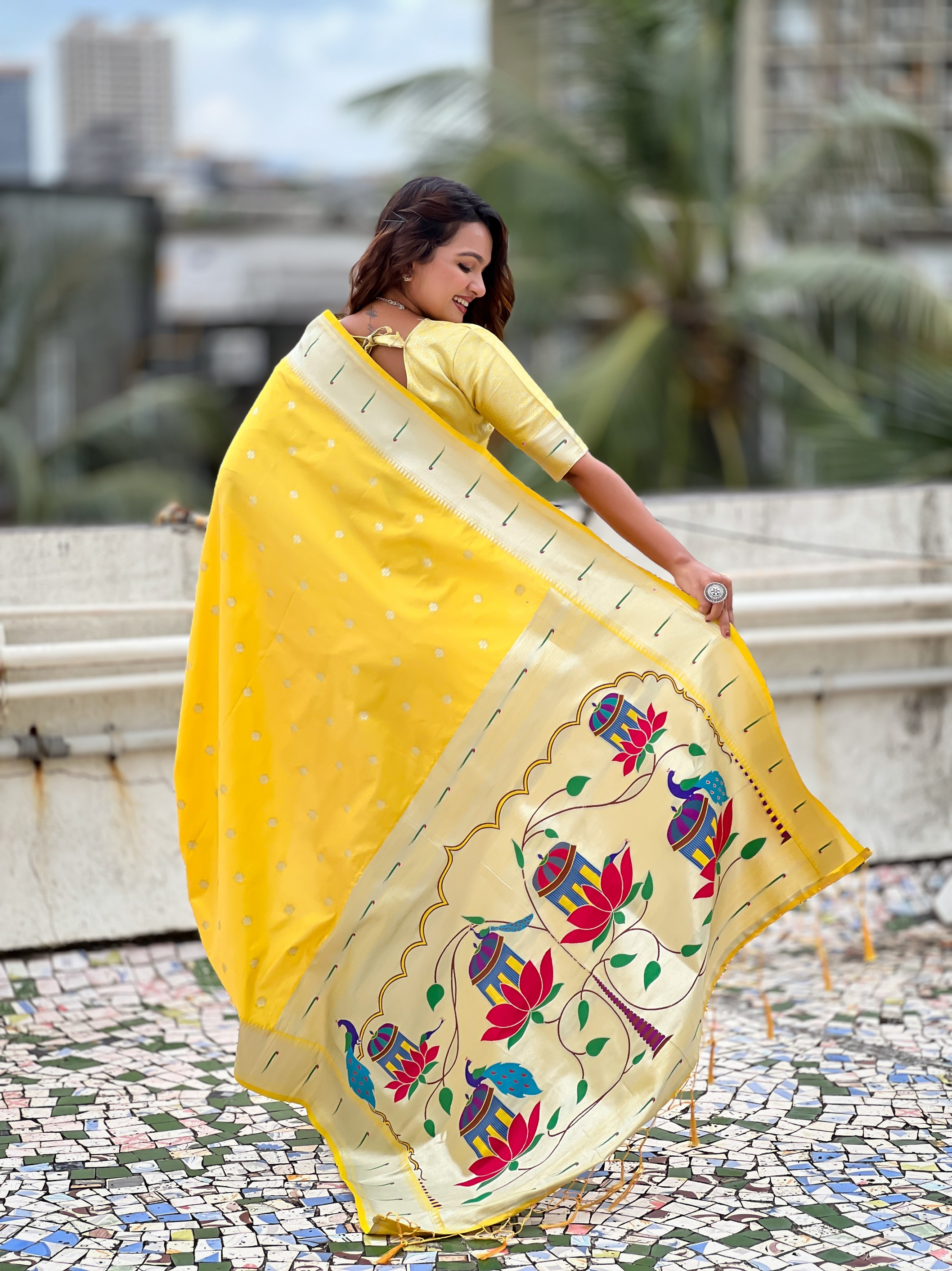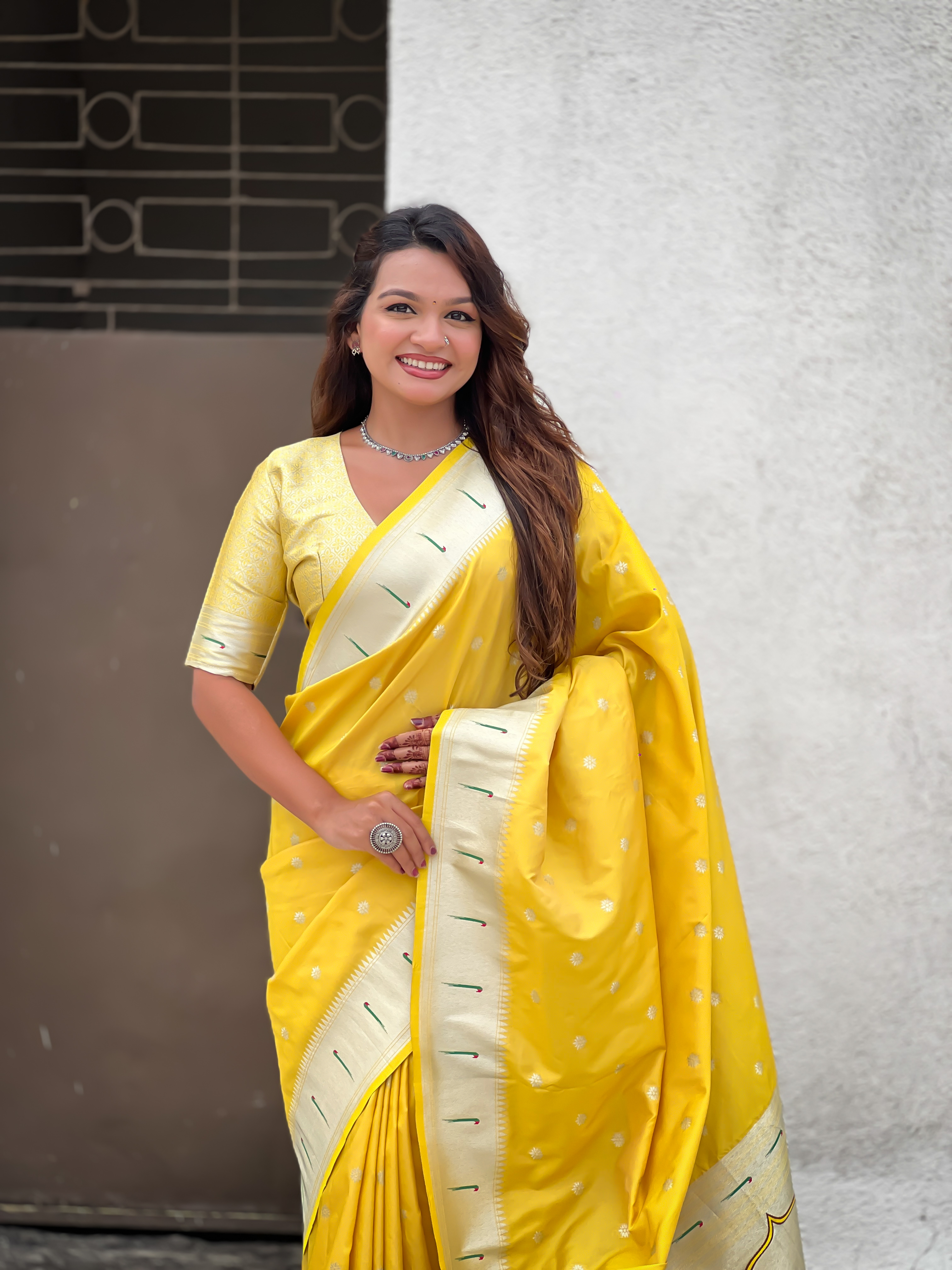 Yellow Color Paithani Silk Woven Designer Ceremonial Partywear Saree