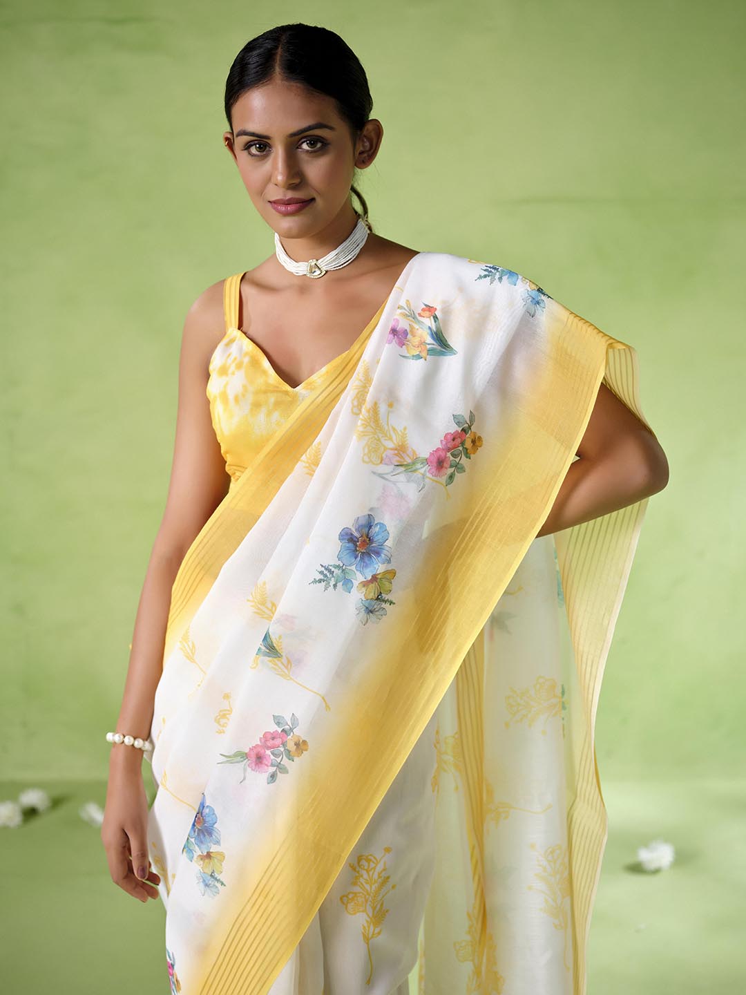 Yellow Color Silk Blend Girlie Designer Printed Saree For Rich Sophisticated Looks