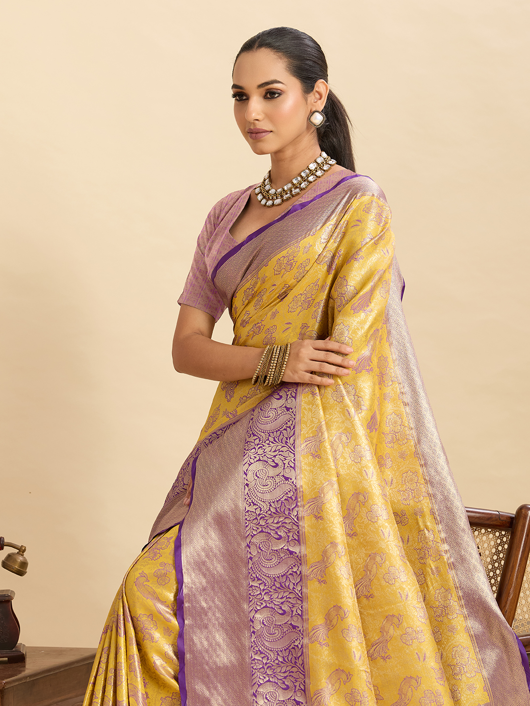 Yellow Color Silk Blended Woven Jari Designer Ethnic Partywear Saree