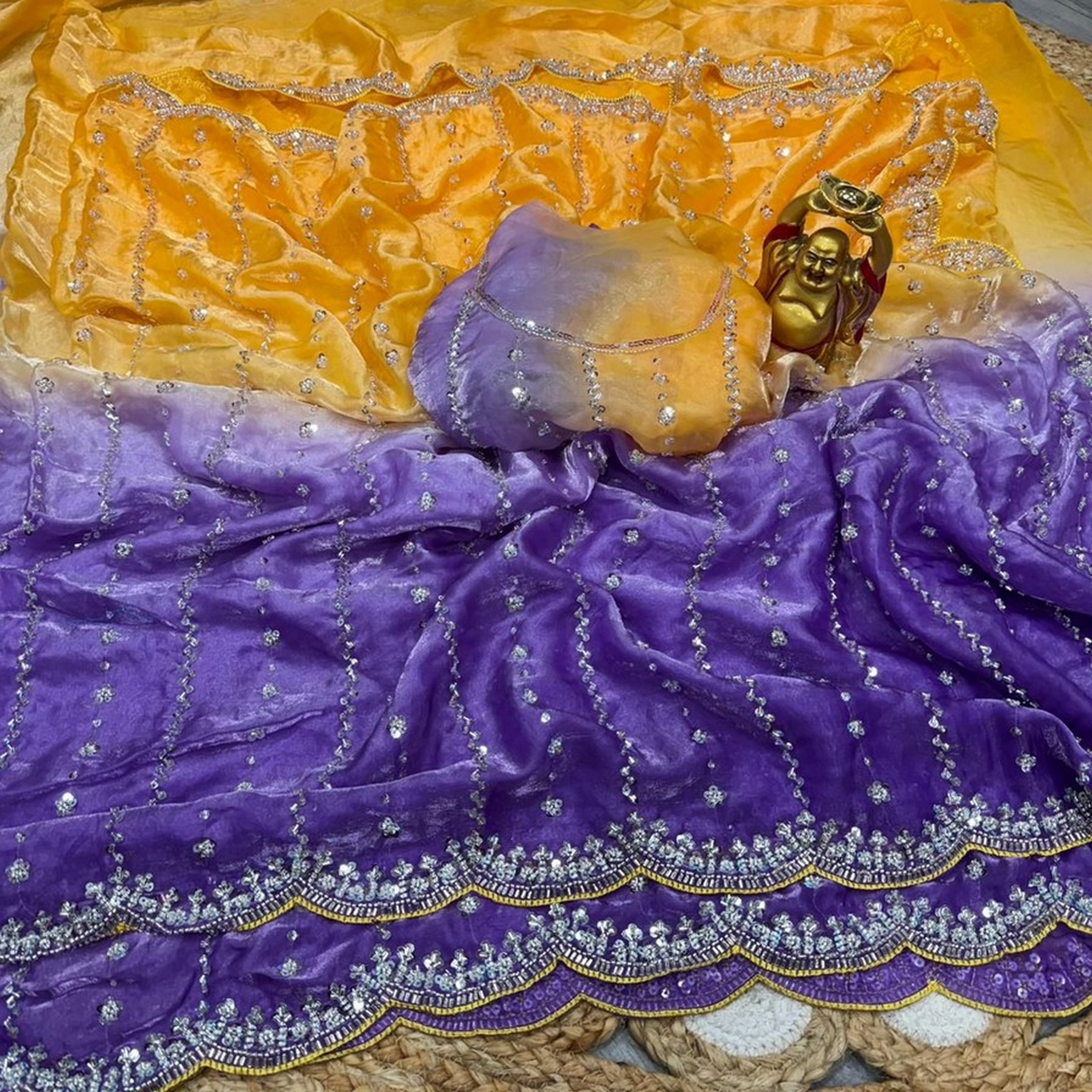 Made using high-quality fabrics such as silk, soft silk, georgette, organza, chiffon, crepe, linen, cotton blends ...etc .
