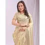 Yellow Color Woven Zari Designer Ethnic Organza Fabric Saree