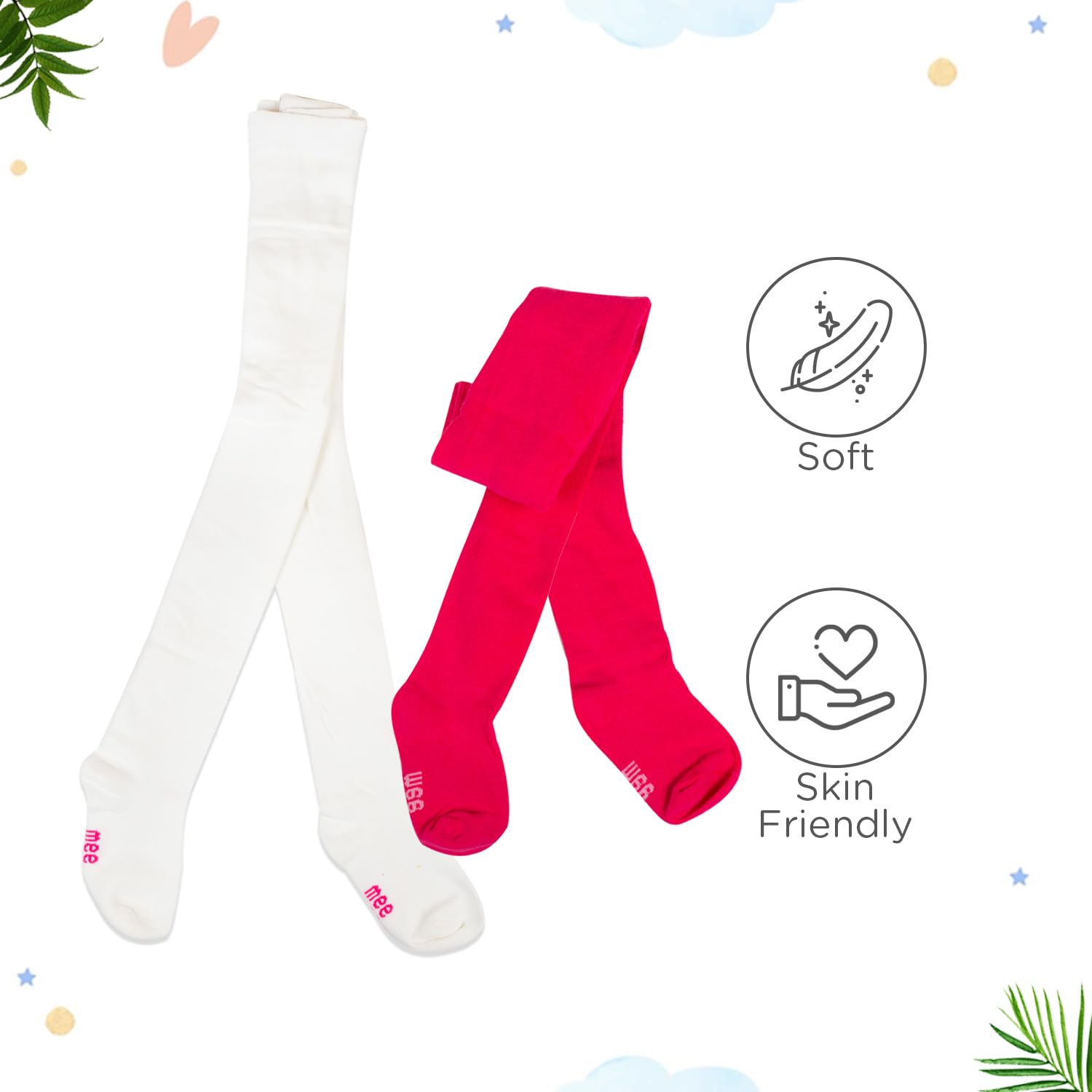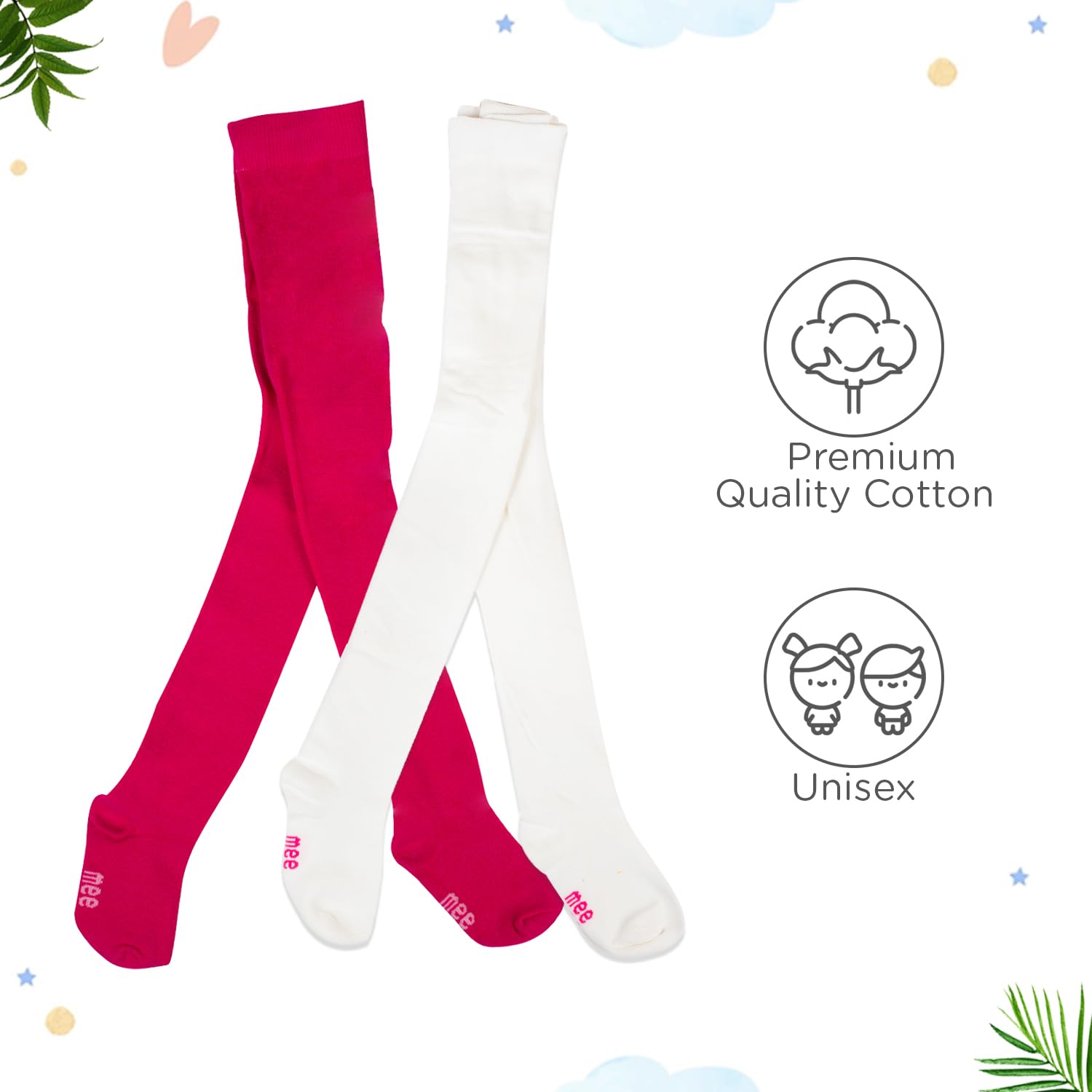 Mee Mee Baby Stockings | Unisex | Full Length | 100% Cotton |Stretchable| Snug Fit |Unisex Stockings | Pk of 2 | Pink & White