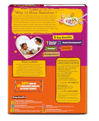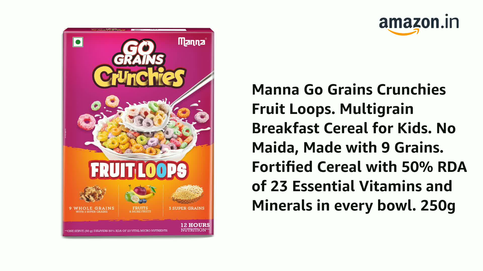 At Manna we believe that what we eat directly impacts what we get out of life. That's why we are on a mission to make food occasions more nutritious. Go Grains Crunchies is specially formulated to provide 50% RDA (Recommended Daily Allowance) of 23 vital essential nutrients that ensures half day nutrition (12 hours) for your child as per the recommended guidelines. Get more from every bowl of Go Grains Crunchies. More taste more nutrition and make the most everyday.
