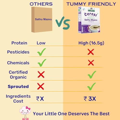 TummyFriendly Foods Certified 100% Organic Sprouted Sathu Maavu Porridge Mix ,Made of Sprouted Ragi, Whole Grains, Pulses & Nuts , Rich in Protein & healthy-Fat For Baby Weight Gain, 200g Each, 2Packs Cereal (400 g, Pack of 2)