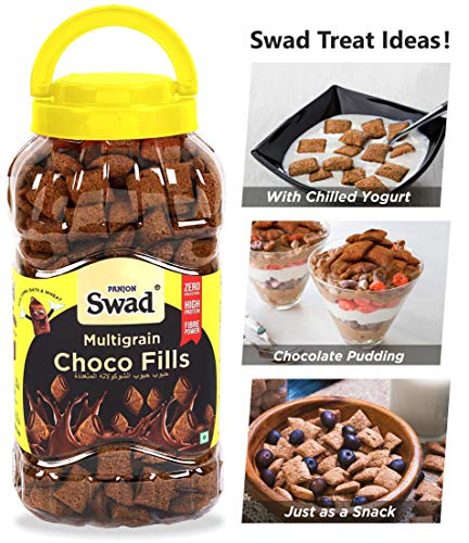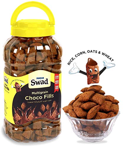 Swad Breakfast Cereal Multigrain Fills (Made with Oats Corn Wheat Rice Zero Cholesterol Chocolate Fills) Jar 370 g