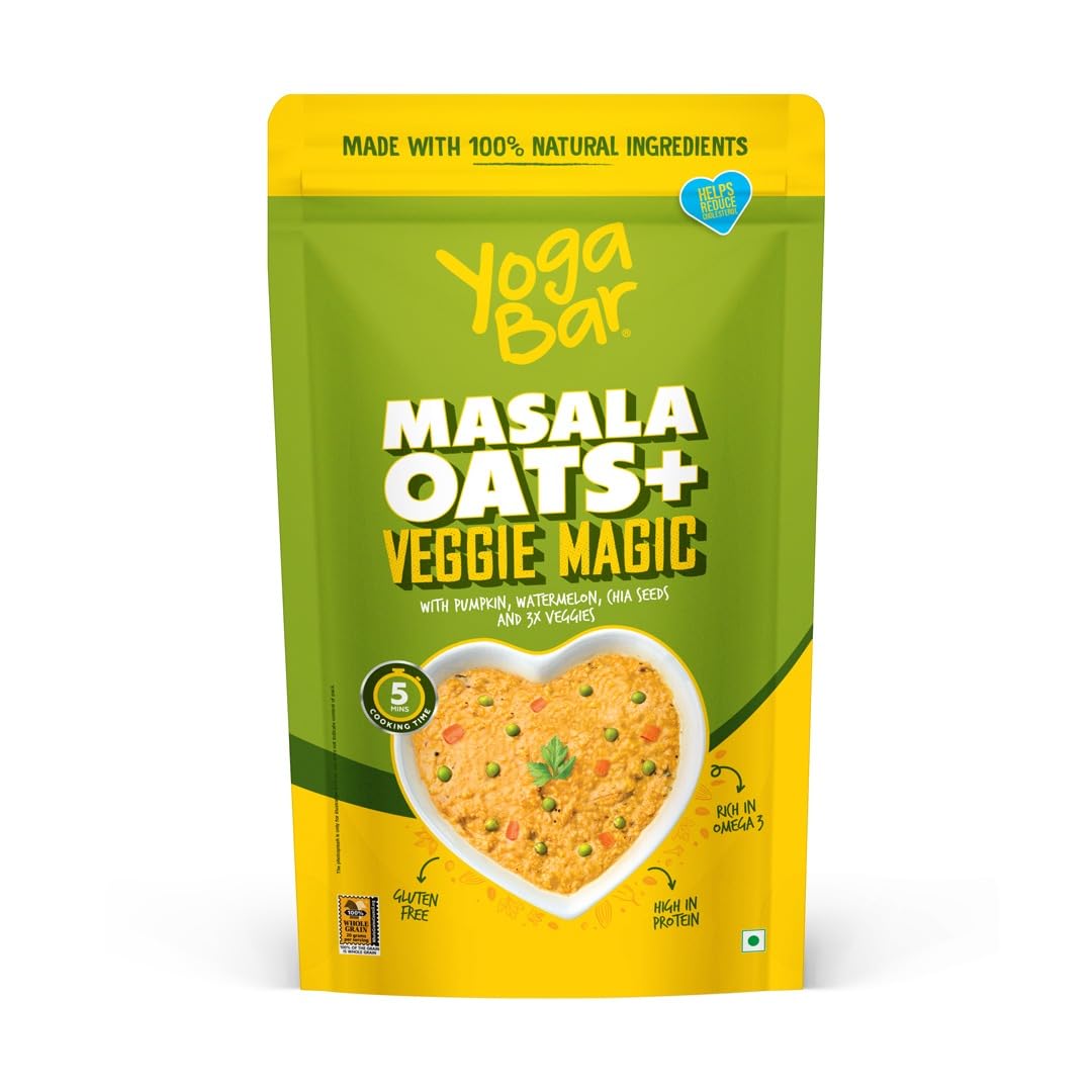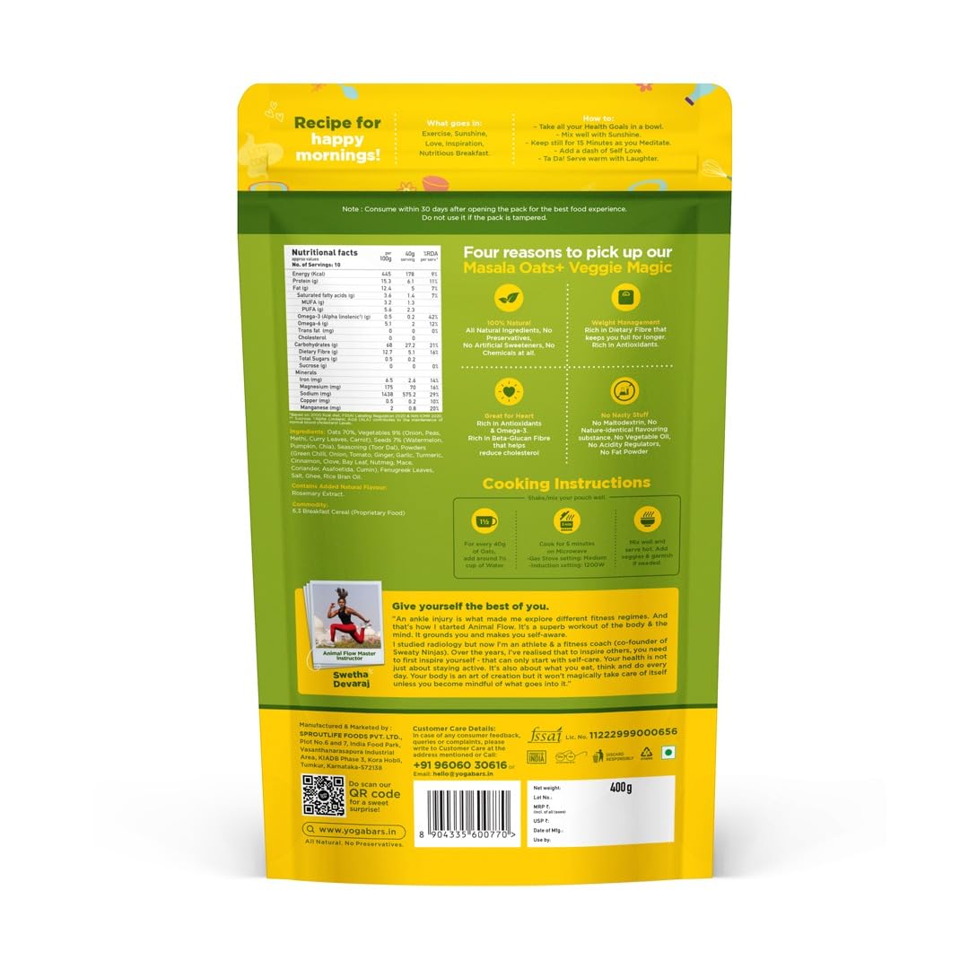 HomeGroceryHealthy BreakfastOats & MuesliYogabar Veggie Magic Oats 400 g | Premium Oats with High Fibre 100% Whole grain Non GMO | Gluten Free Golden Oats for Weight Loss | Healthy Breakfast Cereal with Wholegrain Oats