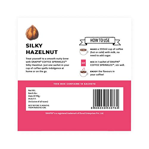 Snapin Coffee Sprinkles Silky Hazelnut - Flavours for Your Coffee Pouch 10 sachets 90g