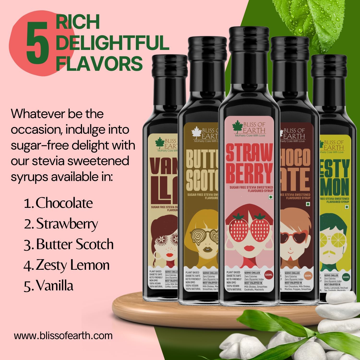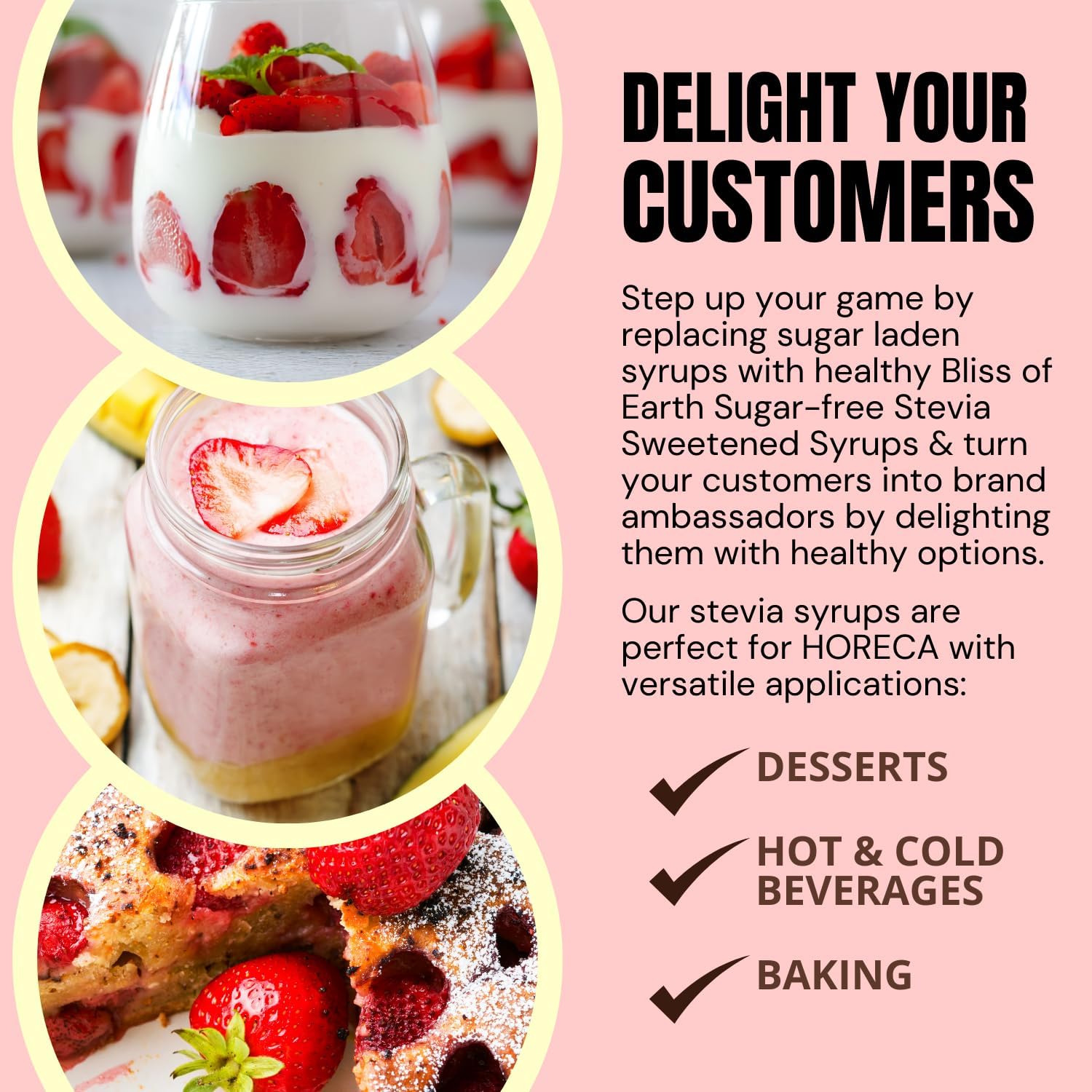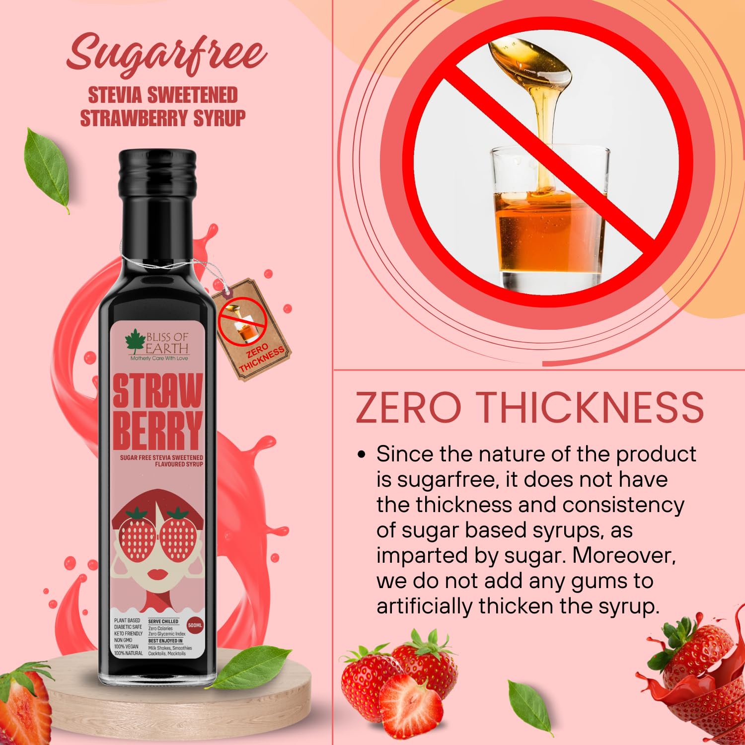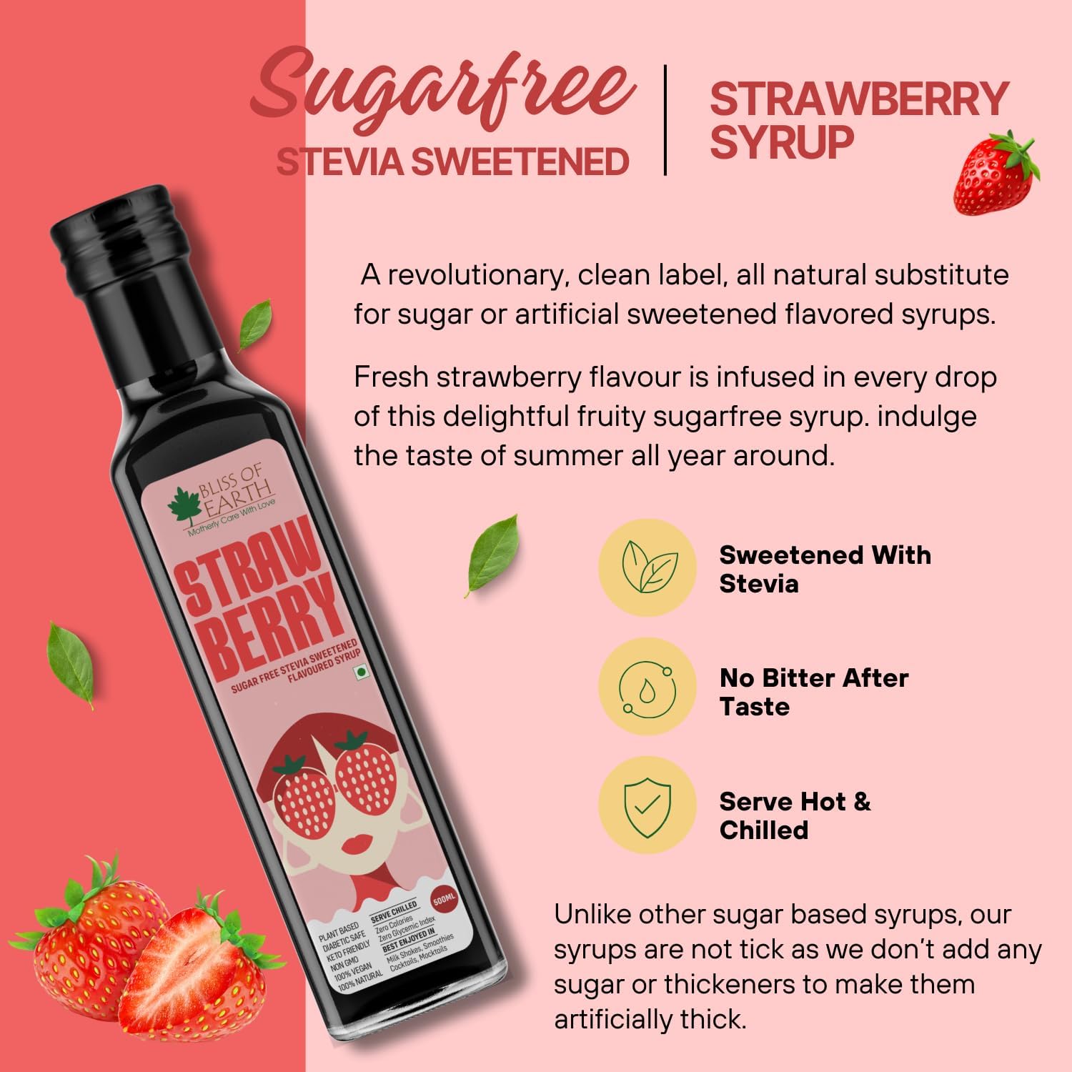 Introducing Bliss of Earth's Strawberry Syrup the guilt-free indulgence you've been waiting for. Enjoy the sweet taste of strawberries without the sugar and calories. With zero glycemic index you can satisfy your sweet tooth without the guilt. Try it now and treat yourself to a healthier alternative. Bliss of Earth's Strawberry Syrup is the perfect addition to your favorite drinks and desserts. Its sugar-free formula allows you to enjoy the delicious flavor without compromising your health. Say goodbye to empty calories and hello to a delightful treat that won't impact your diet. Try it today and elevate your culinary creations with a guilt-free twist.