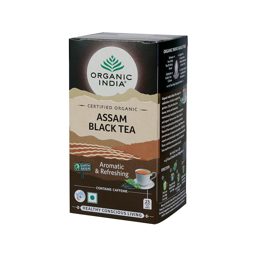 Organic India Assam Black Tea is a sparkling amber-hued tea an ideal choice for tea enthusiasts who delight in a strong brew enjoyed perfectly with a dash of milkEmbrace the symphony of flavors as they dance gracefully upon your palate allowing the robust essence of this tea to envelop your senses.