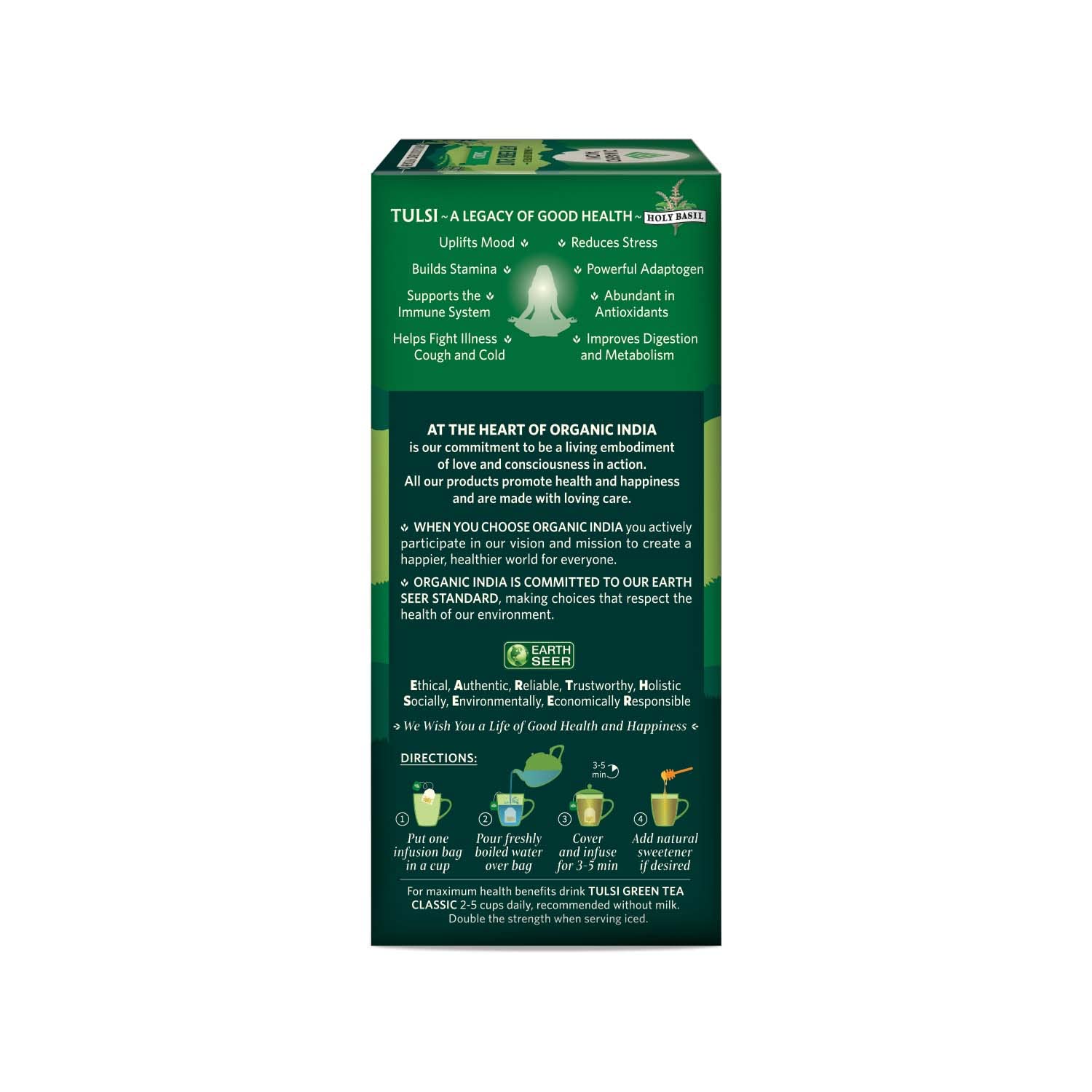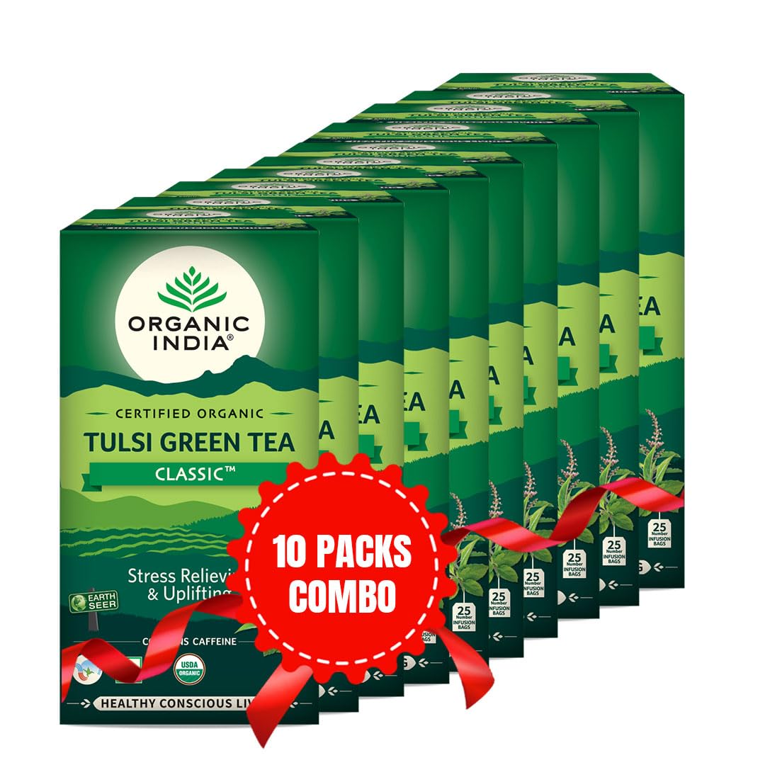 Organic India Tulsi Green Tea Classic - 25 Tea Bags (Pack of 10)