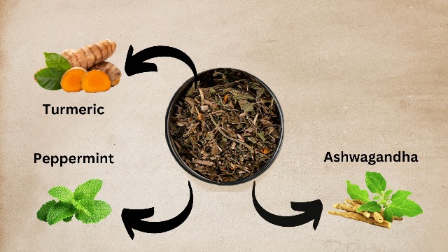 Peppermint Ashwagandha Holy Basil Shatavari Licorice Nettle Ginger Turmeric Green Tea