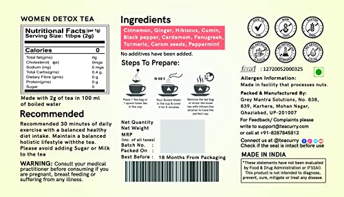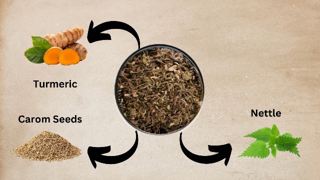 fenugreek ginger cinnamon turmeric carom seeds peppermint cardamom black pepper cumin fennel nettle and hibiscus