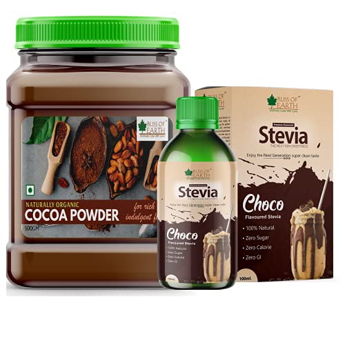 Bliss of Earth Naturally Organic Cocoa Powder is the perfect companion to any health concious kitchen. From holiday desserts and everyday baking to a steaming cup of cocoa on those chilli mornigs our cocoa powder offers a guil-free way to satisfy your sweet tooth without the high amount of sugar fat and preservatives which are commonly available in other mixes. In addition to its rich and indulgent flavor it is non-alkalinized and also has naturally occuring cocoa flavonols (polyphenols). Stevia is the sweetest herb mother Earth has to offer and itopopularity is growing around the world as more and more of us search for ways to improve our diet and support our health. Presenting Bliss of Earth liquid stevia which is the original glycerin free & sucralose free sweetener containing 99.8% REB-A. Itoa wonderful way to add this sweet supplement to beverages and baked goods and a little goes a long way. 100% natural alternative to sugar and artificial sweeteners. Our stevia liquid can be used to sweeten anything you like from tea and coffee to breakfast cereals/porridge natural yogurt smoothies grapefruit etc. It can also be used in home baking. Have fun and experiment! Because its a liquid it is much easier to use simply add a drop at a time until you reach the desired taste. 4-6 drops roughly equals 1tsp of sugar. However tastes can vary so we suggest that if you are new to using stevia you should add 1 drop at a time until you reach your desired sweetness. Our liquid stevia is a fantastic healthy alternative as it has no calories no carbs doesnt affect tooth decay doesnt have any nasty side effects and therefore is great for people on sugar restricted diet.