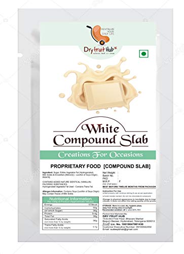Dry Fruit Hub White Chocolate Compound 400gm Dark Chocolate for Cake Baking Dark Chocolate Bar and Dark Compound Slab Melts smoothly and mixes easily with the recipe it is being used in.