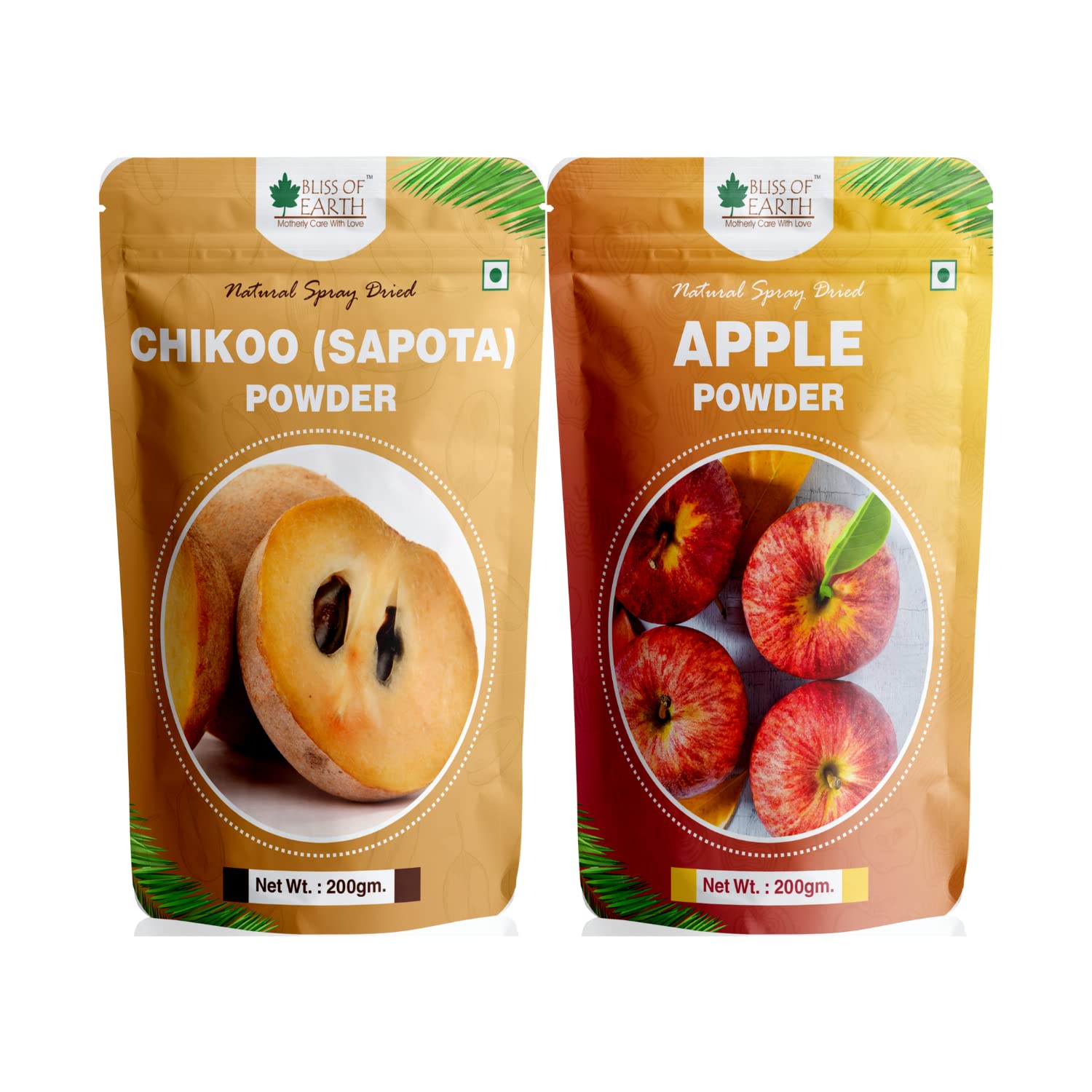 Bliss of Earth 200gm Chikoo (Sapota) Powder+ 200gm Apple Powder Natural Spray Dried