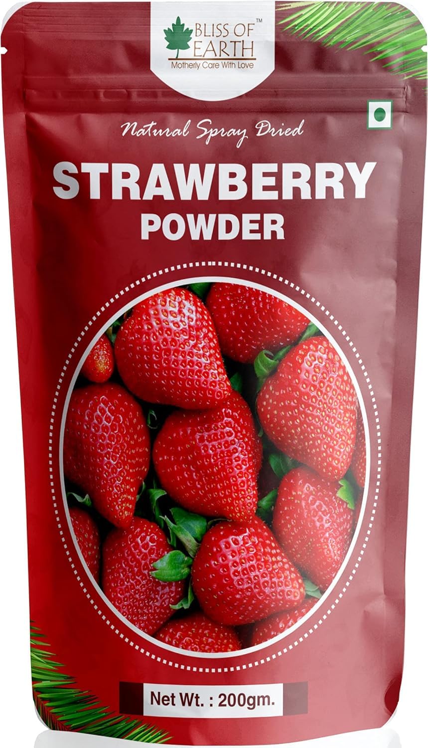Bliss of Earth Strawberry Powder 200gm For Milk, Milkshake, Cake, Kids Loving Natural Spray Dried