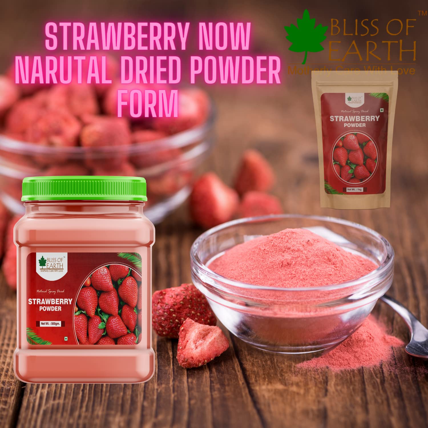 Bliss of Earth Strawberry Powder 400gm For Milk Milkshake Cake Kids Loving Natural Spray Dried 2X200gm