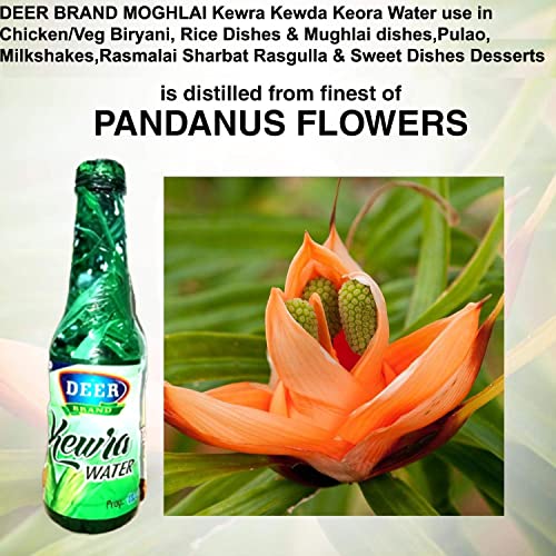 DEER BRAND MOGHLAI Kewra Kewda Keora Water Food Grade specially use in Chicken/Veg Biryani Rice Dishes & Mughlai dishes Pulao Fried Rice Milkshakes ice cream Rasmalai Sharbat Rasgulla & Other Recipes Sweet Dishes Desserts