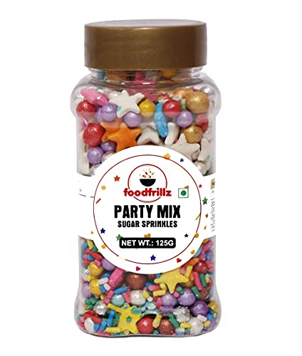 foodfrillz Party Mix Sugar Sprinkles for Cake Decoration 125 g