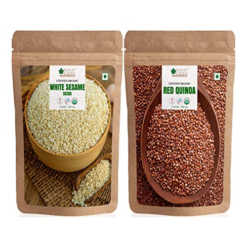 Bliss of Earth USDA Organic Combo of Red Quinoa and White Sesame Seed for Weight Loss Raw Super Food (200gm Each) Pack of 2