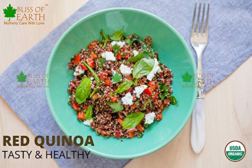 Bliss of Earth Certified Organic Red Quinoa is one of the most popular health food. Its high in protein fiber magnesium B vitamins iron potassium calcium phosphorus vitamin E and various beneficial antioxidants. Its also one of the few plant foods that contain sufficient amount of all nine essential amino acids.