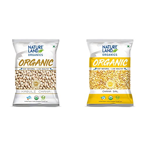 Natureland Organics Kabuli Chana / White Chana / Chole 500 Gm - Organic Healthy ChanaKabuli chana contain significant amounts of fiber which helps lower the total amount of cholesterol in the blood thereby decreasing the risk of heart disease. Natureland Organic foods chickpea is commonly known as chole sourced from projects in Maharashtra and Madhya Pradesh which is machine cleaned and handpicked before packing to ensure its purity and hygiene.Natureland Organics Chana Dal 1 Kg - Organic Healthy PulsesChana dal is high in fiber and help to lower cholesterol. Apart from having a great taste it also has a very low glycemic index which is important for those with diabetes. Rich in fiber and protein healthy and tasty without polish adulterant free anti-inflammatory packed with natural proteins cleaned and hygienically packed.