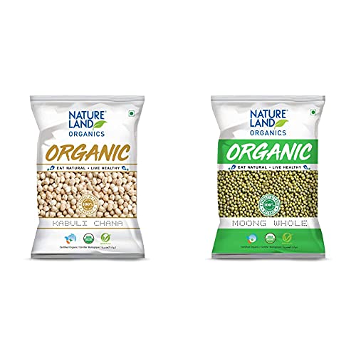 Natureland Organics Kabuli Chana / White Chana / Chole 500 Gm - Organic Healthy ChanaKabuli chana contain significant amounts of fiber which helps lower the total amount of cholesterol in the blood thereby decreasing the risk of heart disease. Natureland Organic foods chickpea is commonly known as chole sourced from projects in Maharashtra and Madhya Pradesh which is machine cleaned and handpicked before packing to ensure its purity and hygiene.Natureland Organics Moong Sabut/Whole Daal Pouch 1 kgNature land organic foods moong whole is greener medium sized and had a great traditional taste since organically grown using traditional seeds and processed traditionally. It is machine cleaned and handpicked before packing to ensure its purity and hygiene which is healthier tastier and have high nutritional value easy to digest and easy to cook.