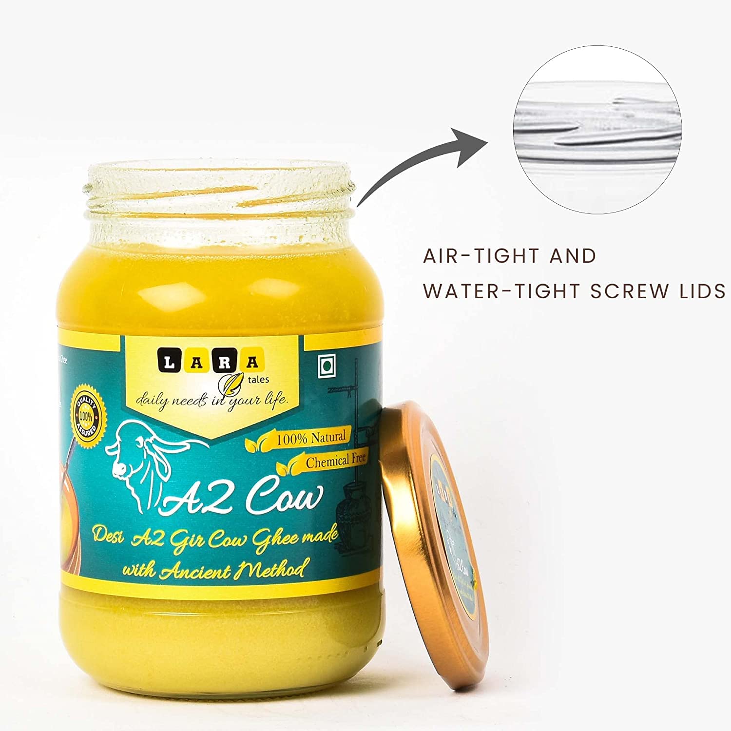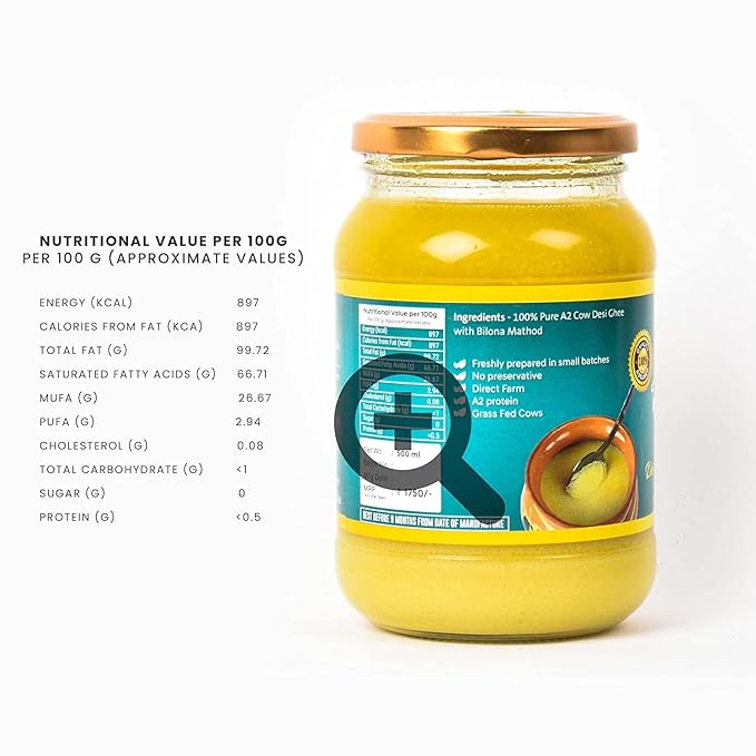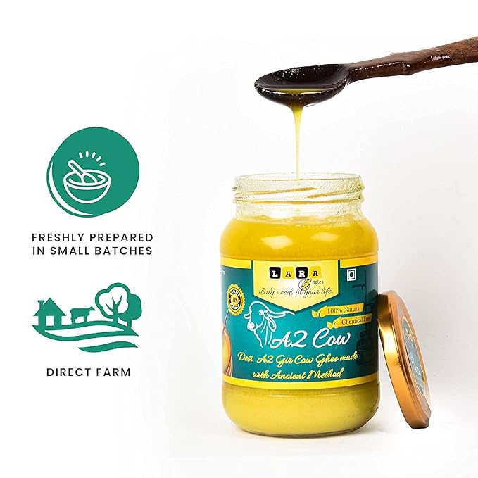 The A2- Grade Milk that is used to extract this milk ghee is known to be one of the healthiest cow milk to have ever existed. Such grade milk is found in the Gir cows and is turned into ghee using the Bilona method of churning. With the right sentiment of feeding the calves first, the milk is then collected from the cows and put to boil in earthen pots. After boiling the milk on wood and fire, it is left outside overnight for it to curdle. The curdled milk is then churned which separates the buttermilk. The bilona method ghee then generates 100% A2 Gir Cow Ghee often known as Bilona Ghee or Bilona Method Ghee.