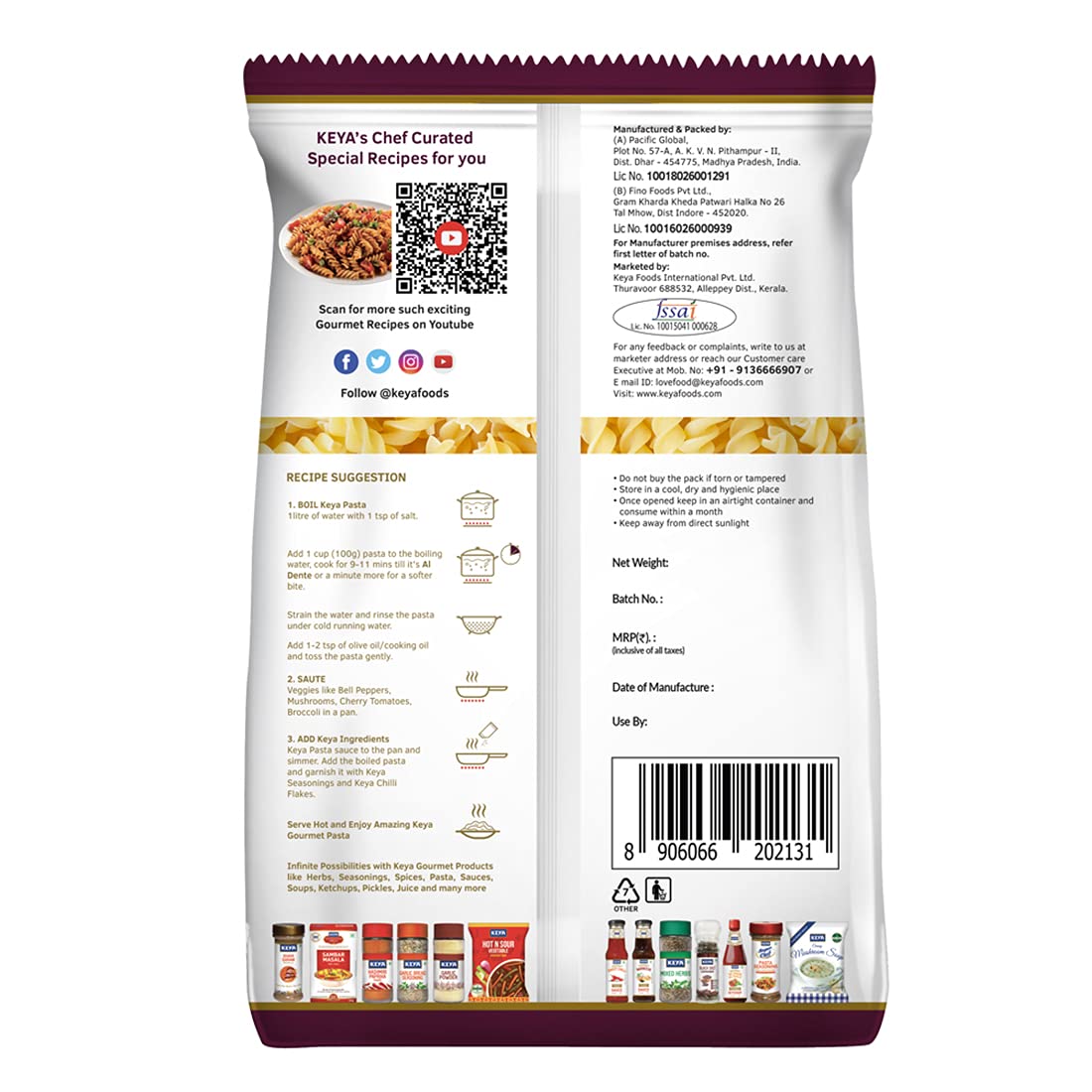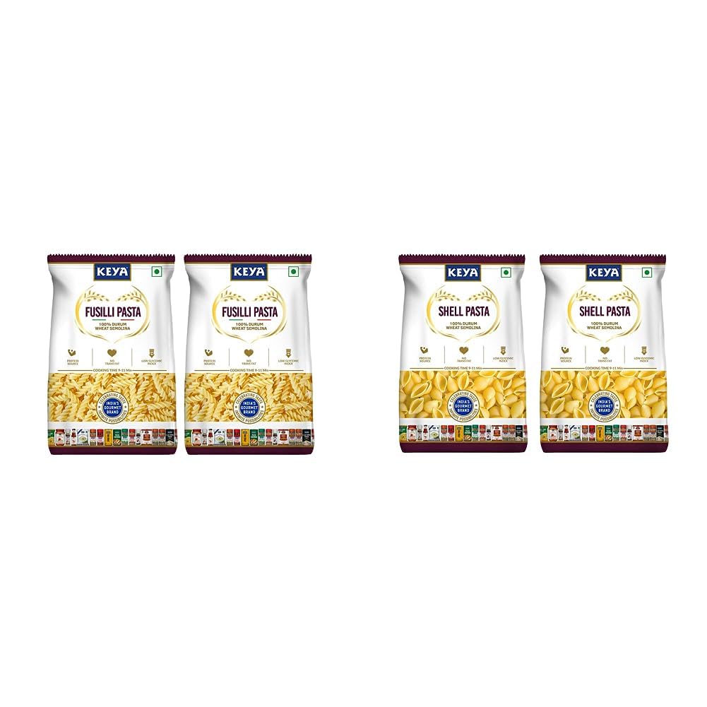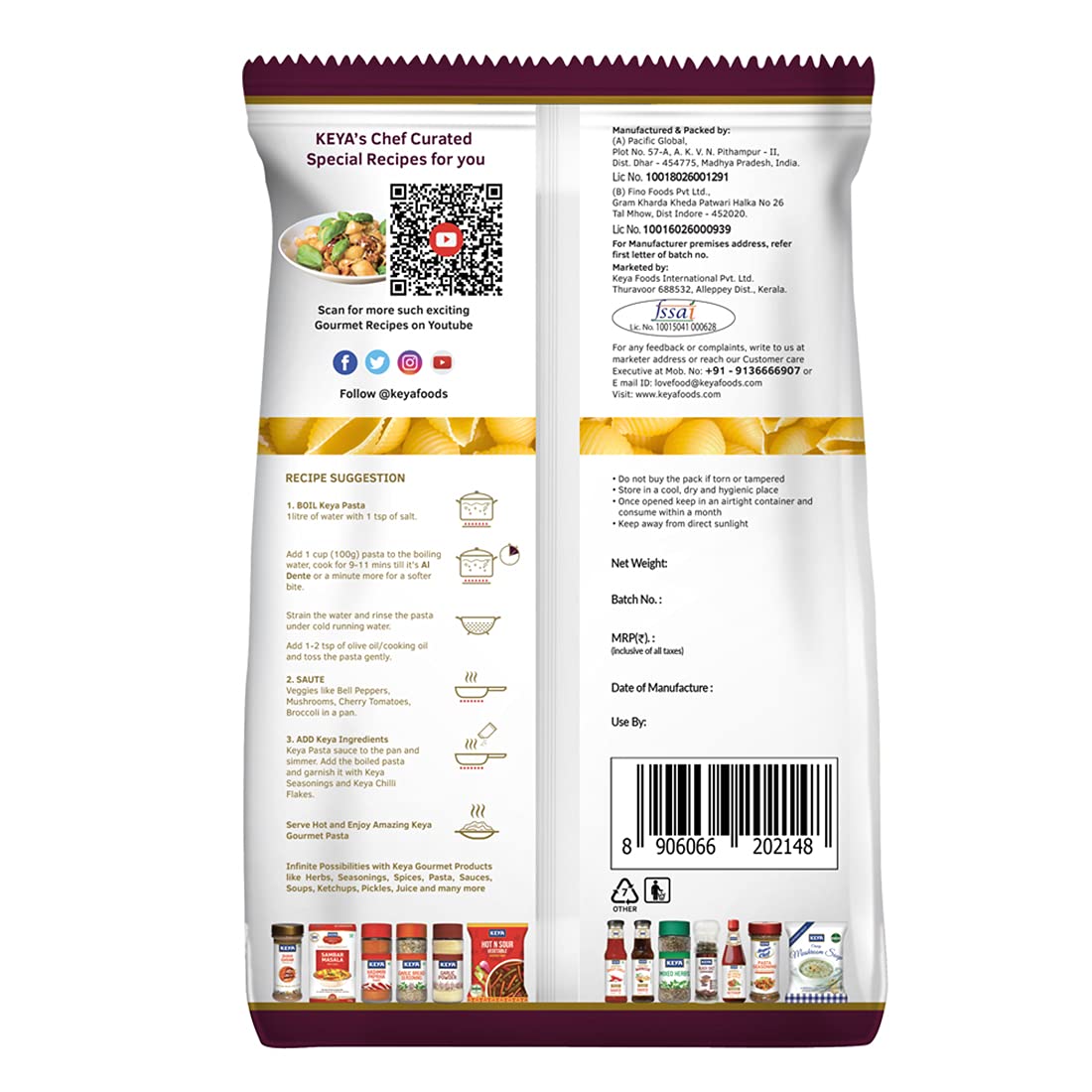 Keya 100% Durum Wheat Fusilli Pasta 400 gm Pack 2Enjoy an Authentic Italian Meal with Easy to Cook KEYA Fusili Pasta. The Use of Wheat Semolina adds the healthy aspect to the pasta as it is a source of protein and fibre thereby making you feel satiated for a longer period. Its perfect shape and size allow any sauce or dressing to seep in well and help you serve the most delectable pasta.Keya 100% Durum Wheat Shell Pasta 400gm Pack 2Enjoy an Authentic Italian Meal with Easy to Cook KEYA Shell Pasta. The Use of Wheat Semolina adds the healthy aspect to the pasta as it is a source of protein and fibre thereby making you feel satiated for a longer period. Its perfect shape and size allow any sauce or dressing to seep in well and help you serve the most delectable pasta.