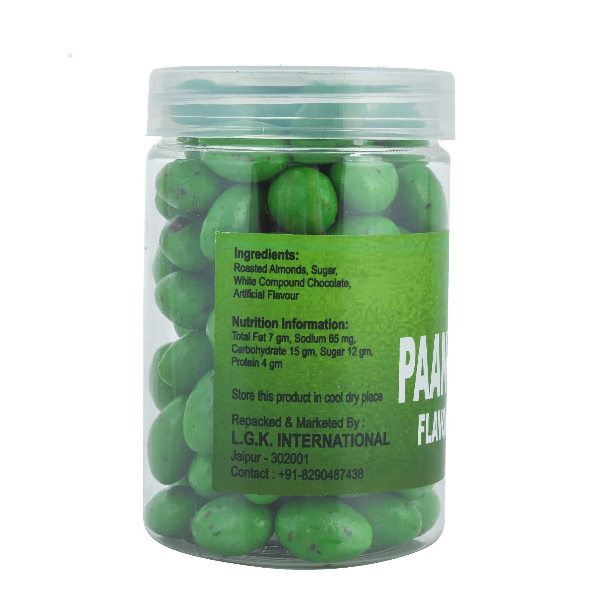 Enjoy the crunchy nutty delight coated in Paan - flavour with exotic Almonds inside in each bite. Almonds covered in Rich Chocolate. A fistful of these nuts can always be a Treat to yourself! Make your daily bowl of cereal exciting & Chocolatey with our chocolate covered nuts.