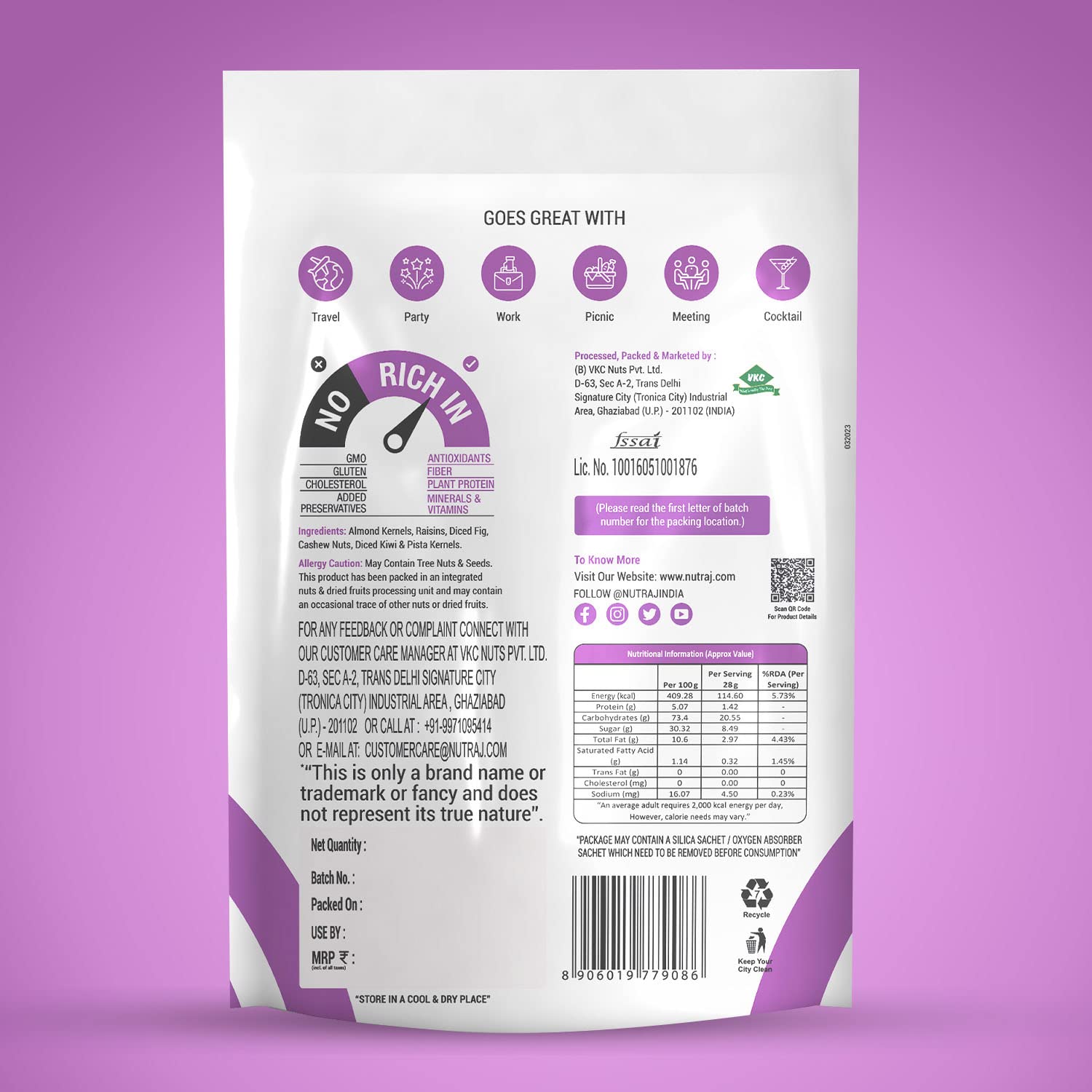 Mixed goodness of wholesome cravings and wonder delights with Nutraj Snackrite Nuts and Dry Fruits Mix that helps you to stay fit while satisfying your taste buds. The mix includes premium quality almond kernels cashews pista black raisins diced anjeer and kiwis. Now enjoy a taste of good health in every crunch with Nutraj Snackrite Nuts and Dry Fruits Mix by your side. So shop stock up and enjoy the superfood crafted just for you today!